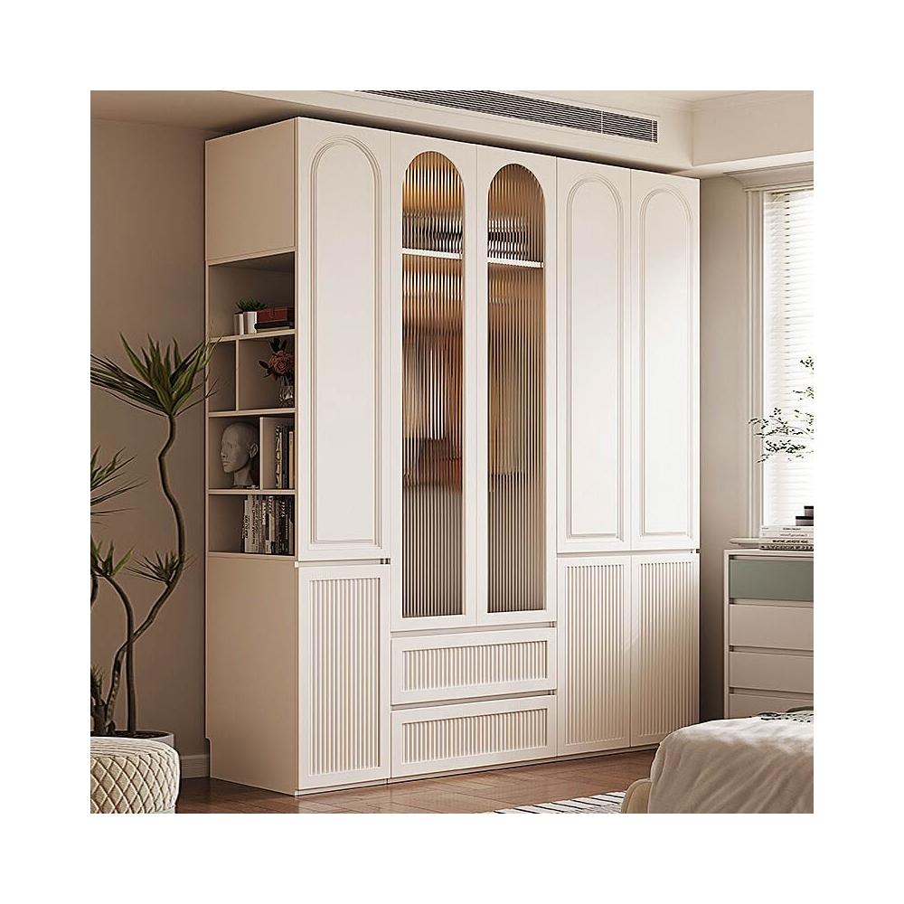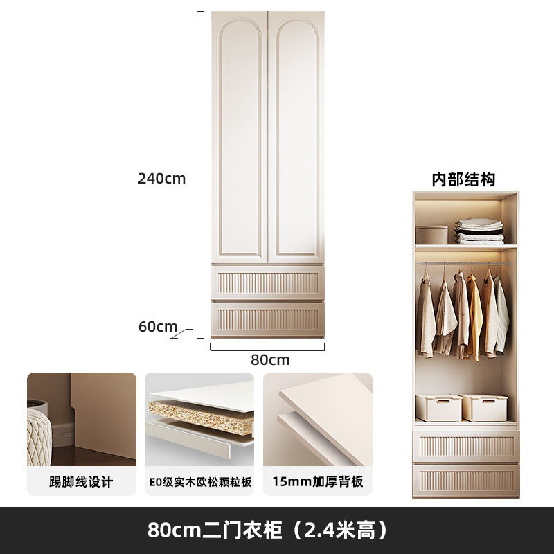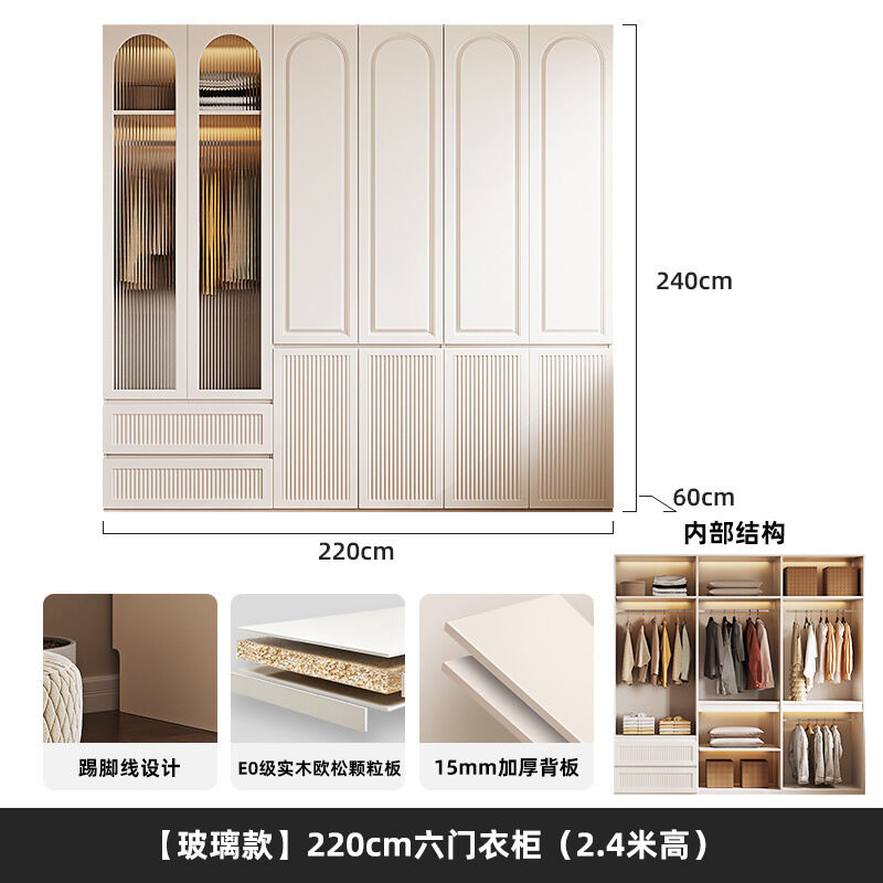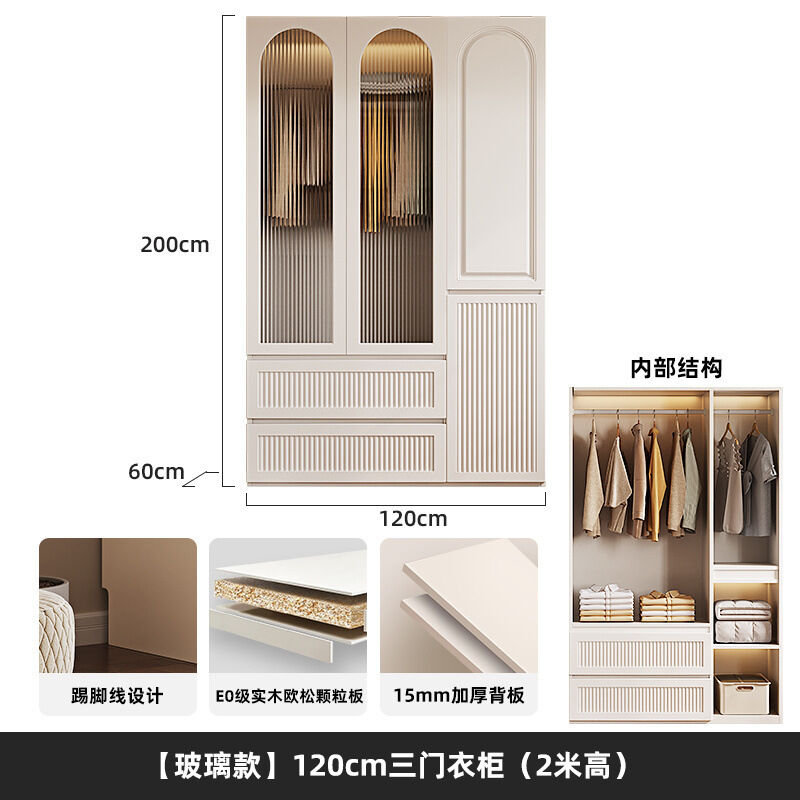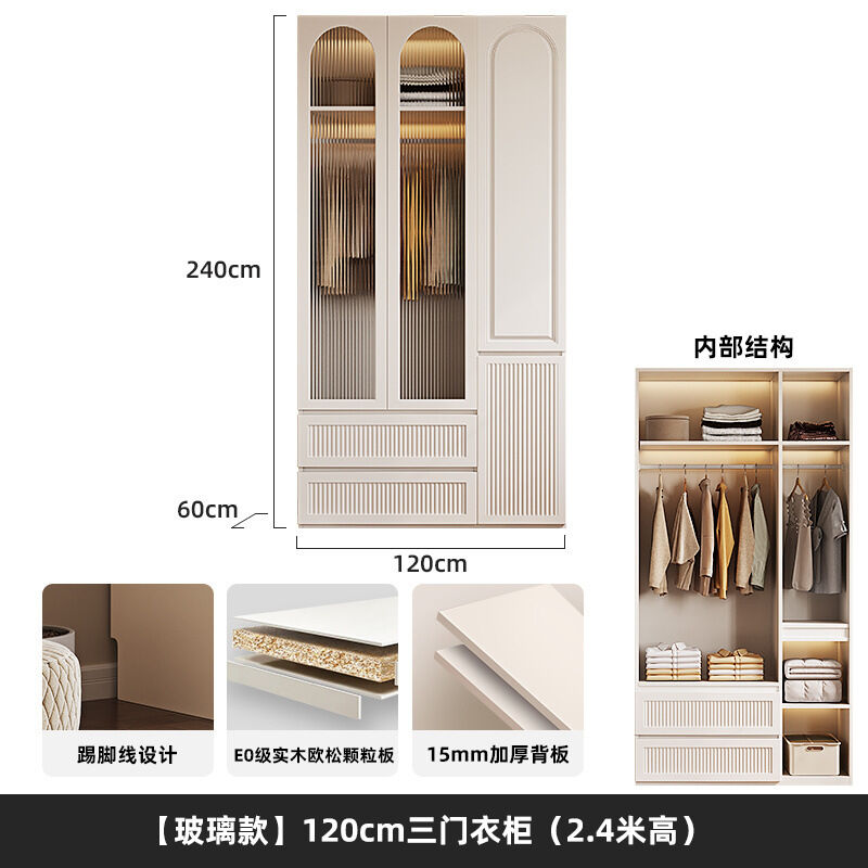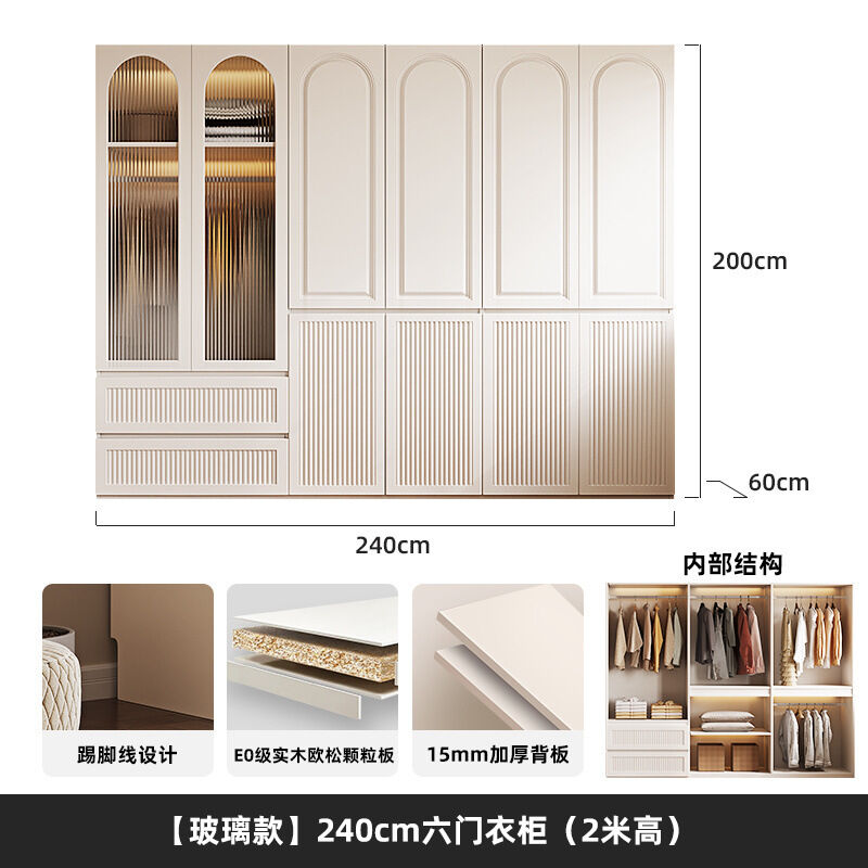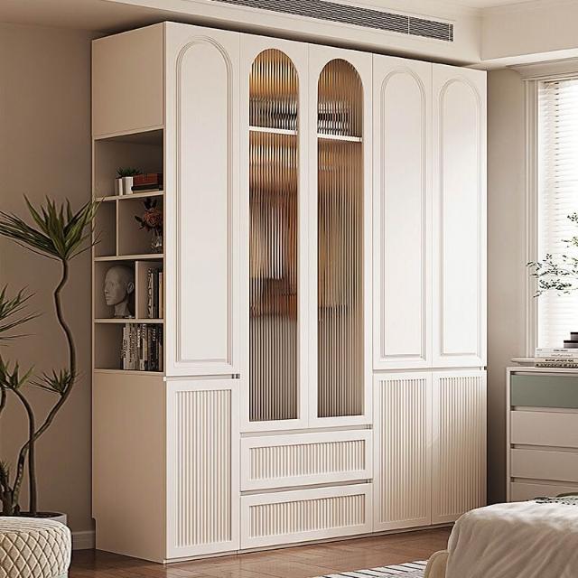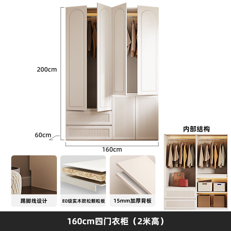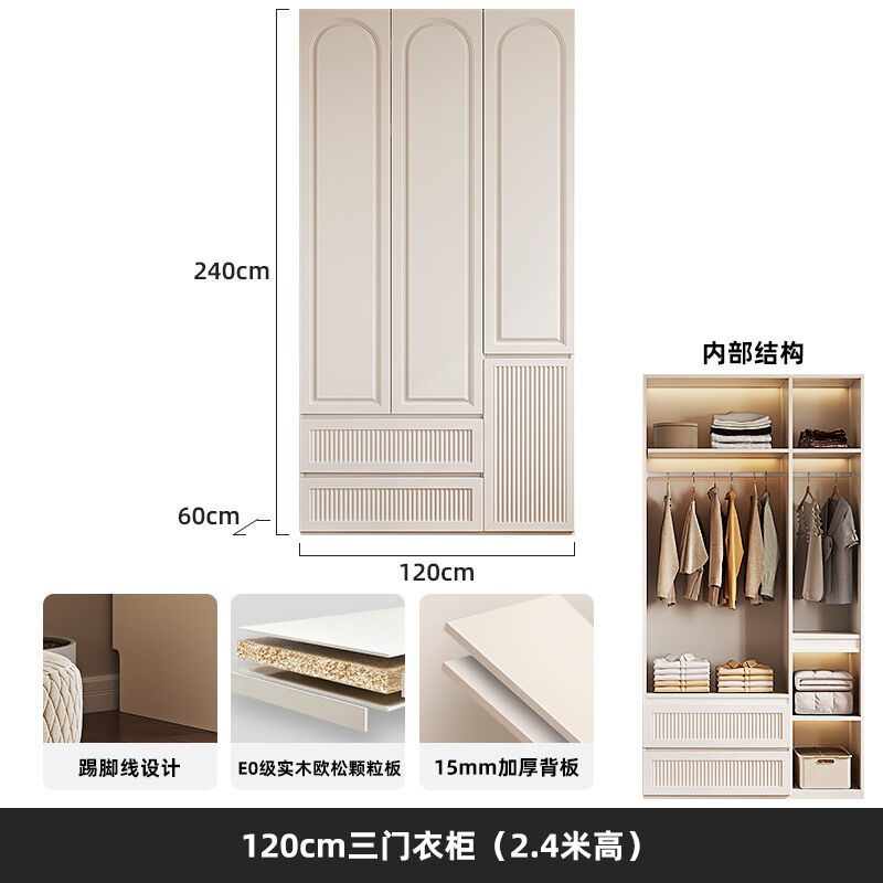 分段式衣櫃奶油風儲物櫃現代簡約家用臥室免拉手輕奢歐式四門衣櫥
