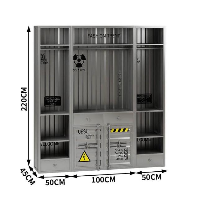 工業風衣櫃衣櫥網紅簡易服裝店集裝箱創意家用臥室鐵藝金屬大衣櫃