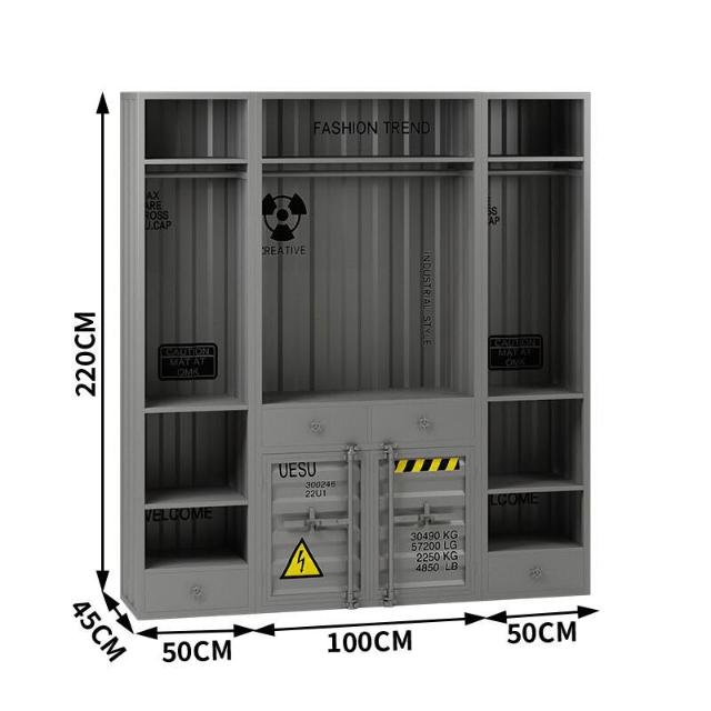 工業風衣櫃衣櫥網紅簡易服裝店集裝箱創意家用臥室鐵藝金屬大衣櫃