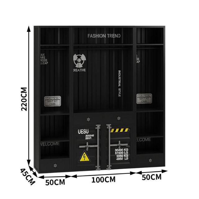 工業風衣櫃衣櫥網紅簡易服裝店集裝箱創意家用臥室鐵藝金屬大衣櫃