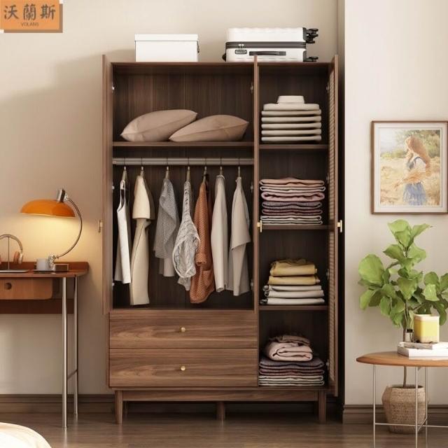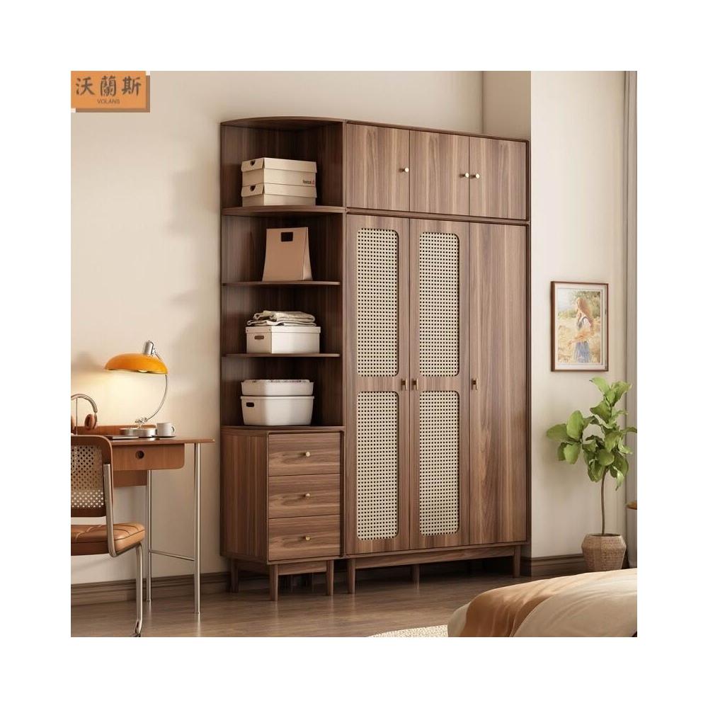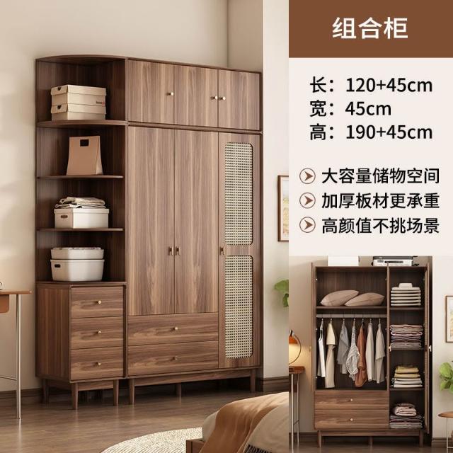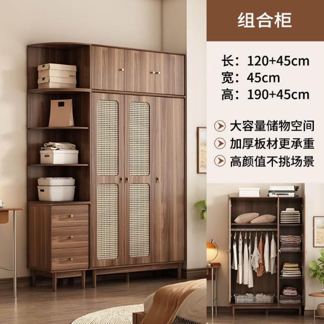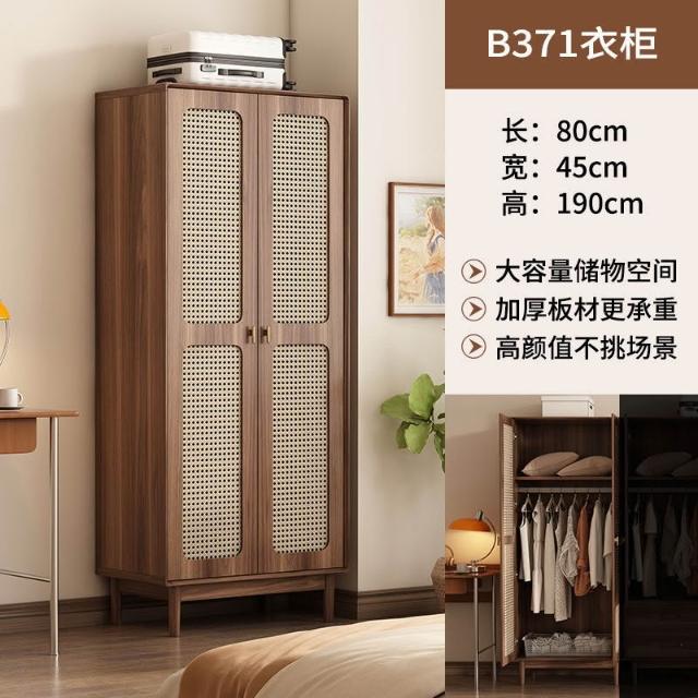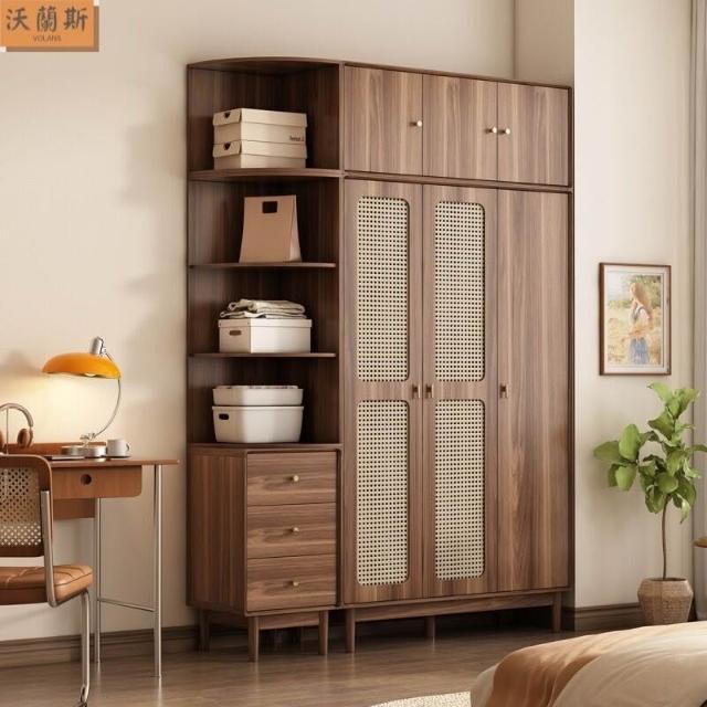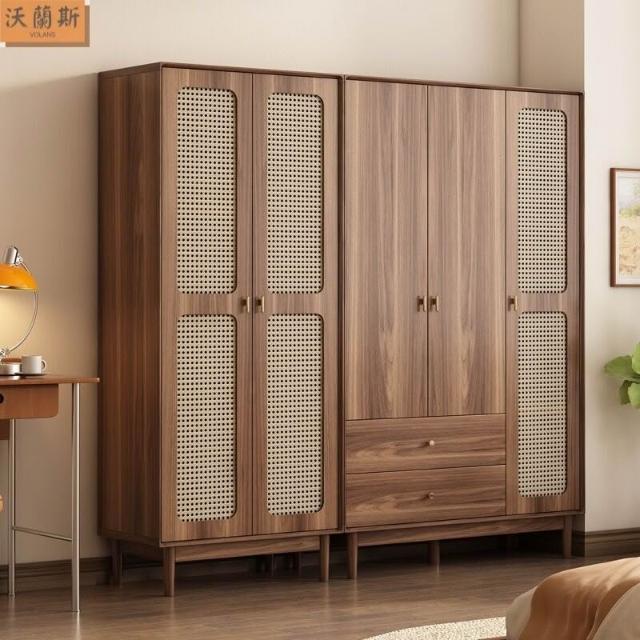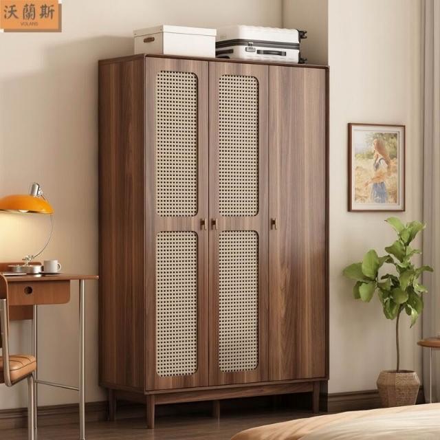 新中式衣櫃臥室家用藤編門衣櫥收納儲物櫃小戶型多層大容量櫃子