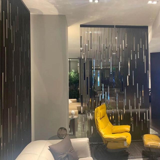 輕奢豎檔鏡面屏風客廳樓梯隔斷酒店辦公室格柵裝飾擋板不銹鋼玄關