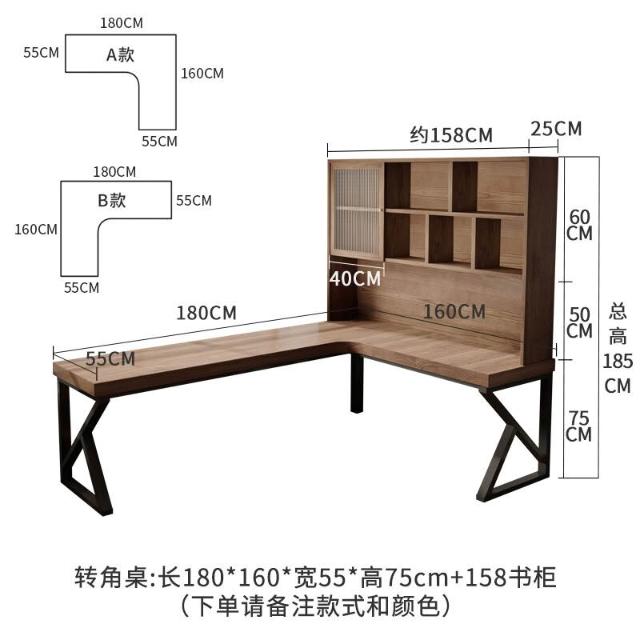 實木轉角書桌書櫃家用拐角雙人辦公桌書房靠墻l型電腦桌書架一體