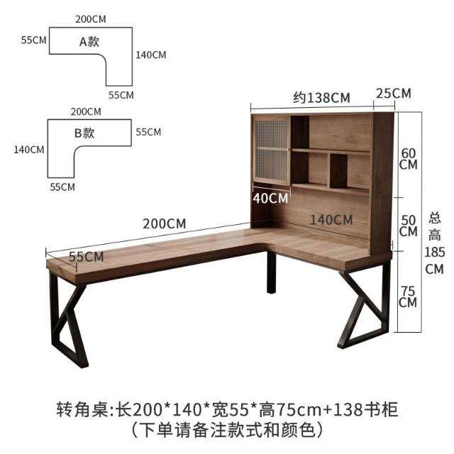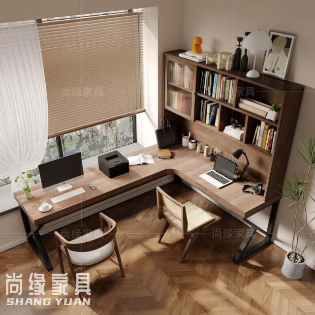 實木轉角書桌書櫃家用拐角雙人辦公桌書房靠墻l型電腦桌書架一體