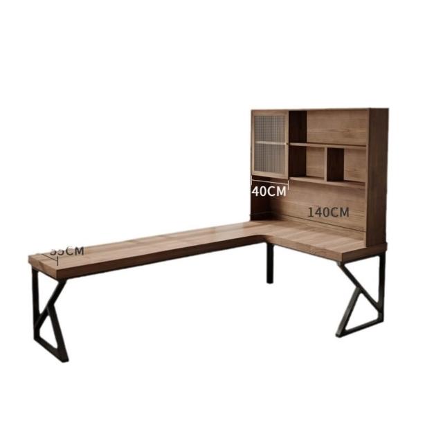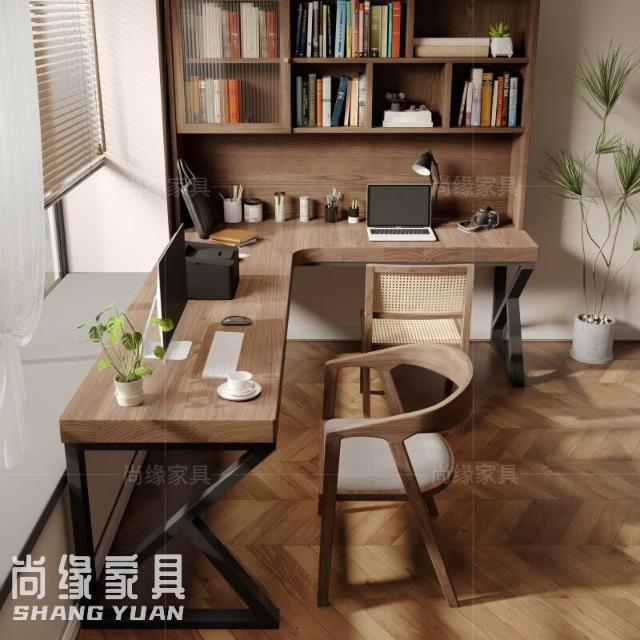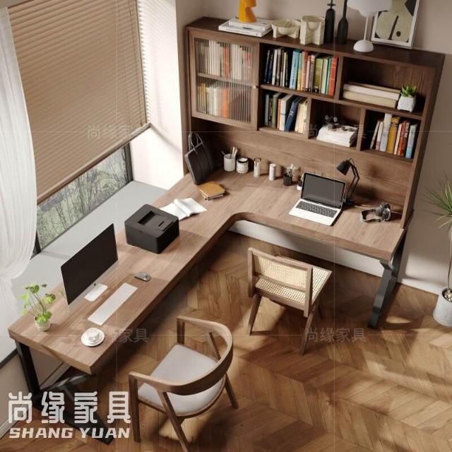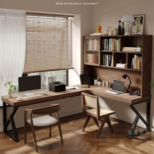 實木轉角書桌書櫃家用拐角雙人辦公桌書房靠墻l型電腦桌書架一體
