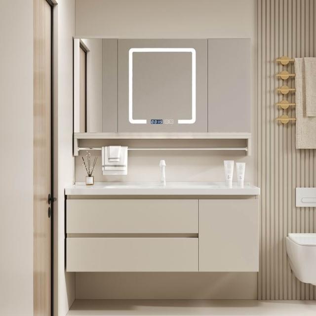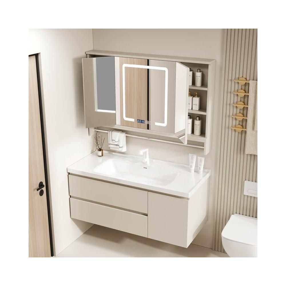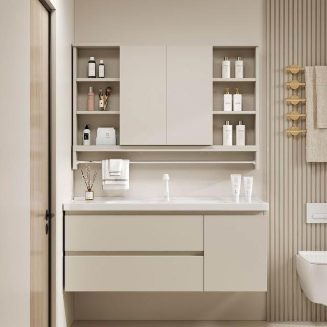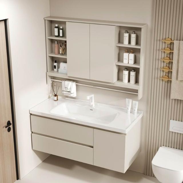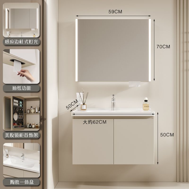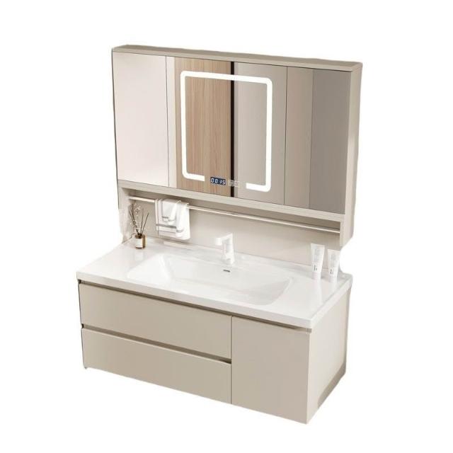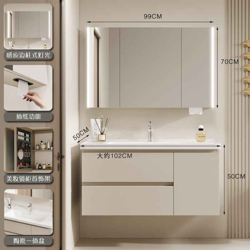折疊風水鏡洗臉盆櫃組合隱藏鏡櫃浴室櫃奶油風陶瓷一體洗手衛浴櫃