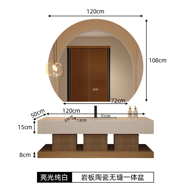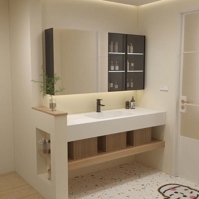 輕奢酒店巖板無縫陶瓷一體盆浴室櫃組合洗手臉盆衛浴衛生間洗漱臺