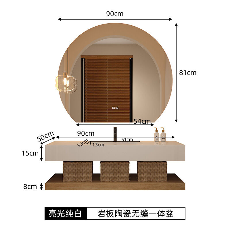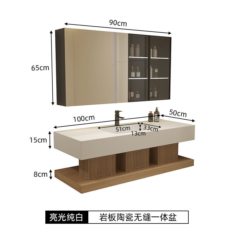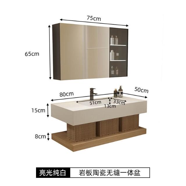 輕奢酒店巖板無縫陶瓷一體盆浴室櫃組合洗手臉盆衛浴衛生間洗漱臺