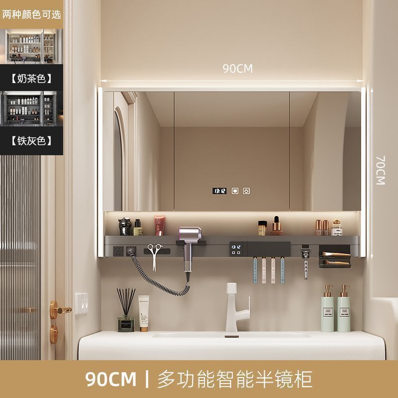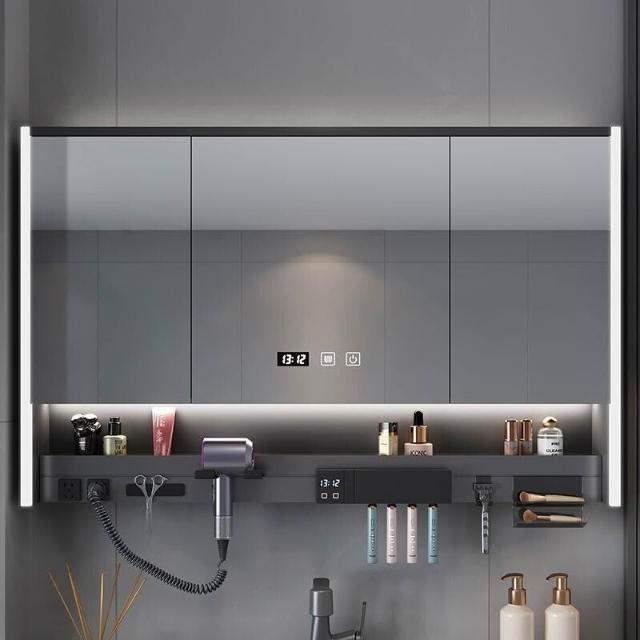 多功能智能浴室鏡櫃帶吹風機牙刷消毒架層板氛圍燈衛生間一體鏡櫃