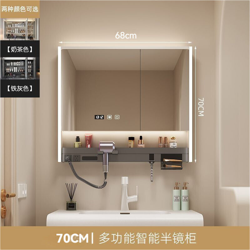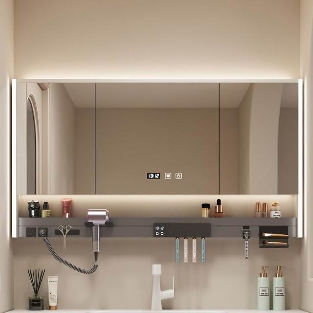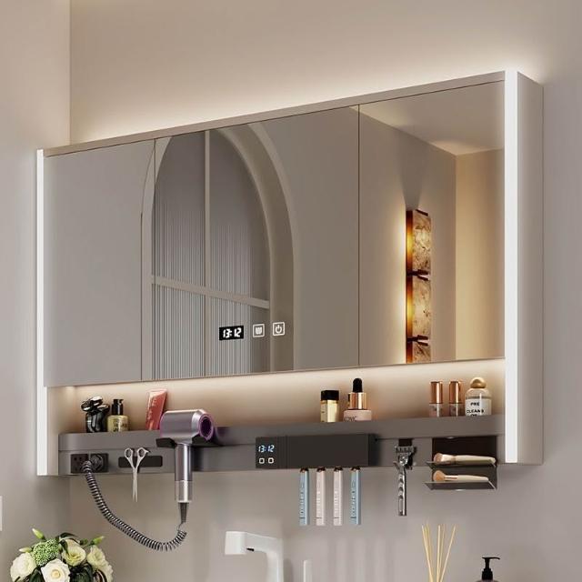 多功能智能浴室鏡櫃帶吹風機牙刷消毒架層板氛圍燈衛生間一體鏡櫃