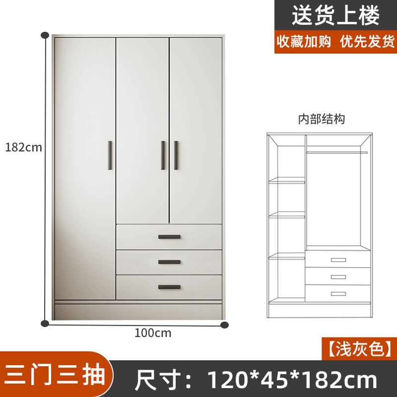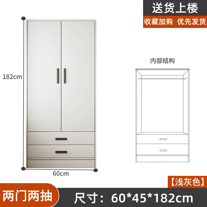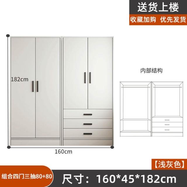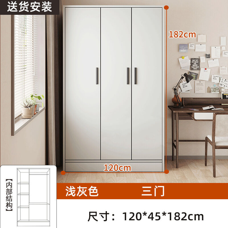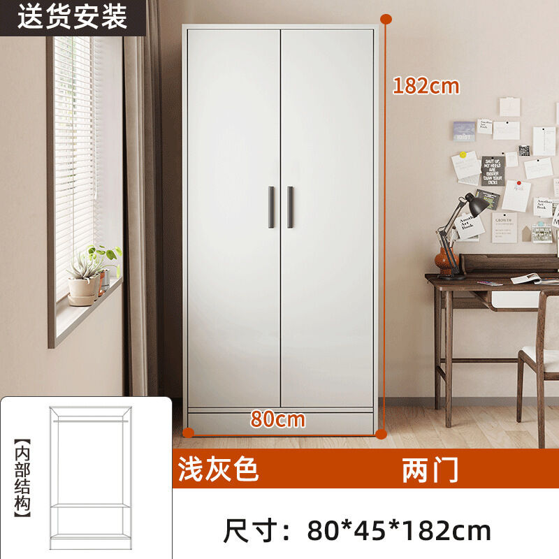 掛衣櫥收納用單人衣櫃經濟型臥室出租房組裝家用公寓儲物櫃淺灰色