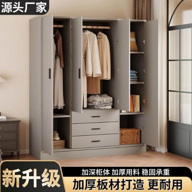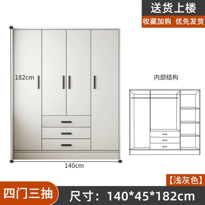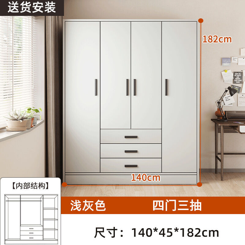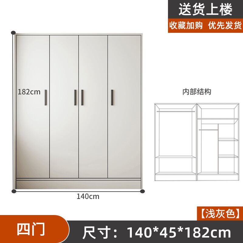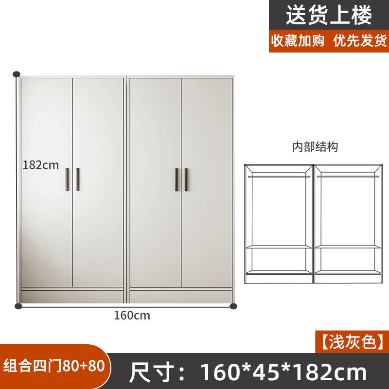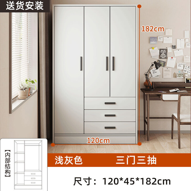 掛衣櫥收納用單人衣櫃經濟型臥室出租房組裝家用公寓儲物櫃淺灰色