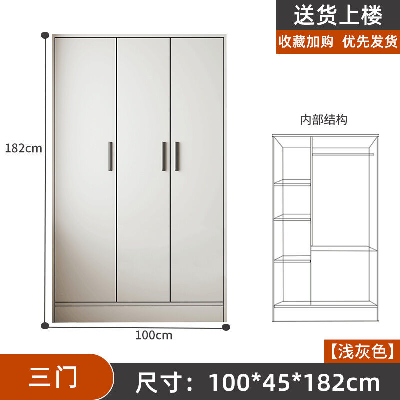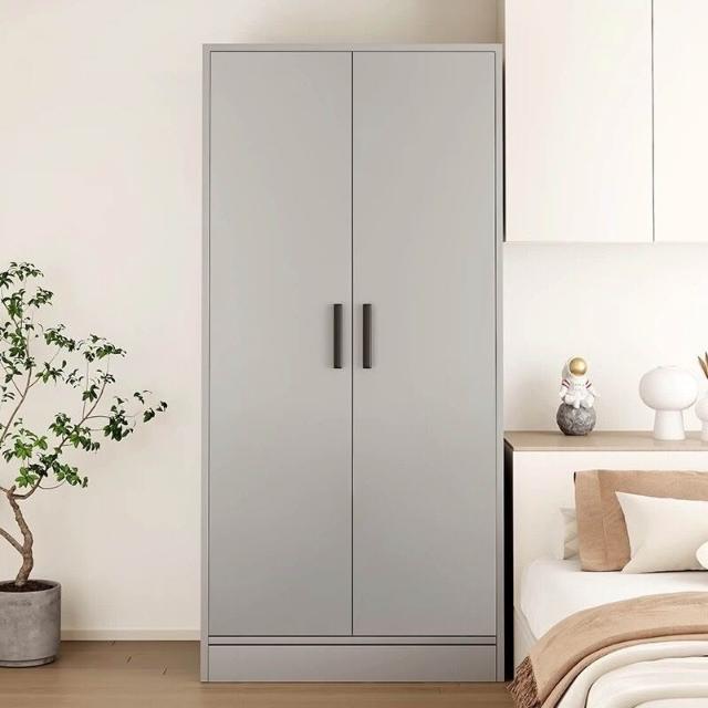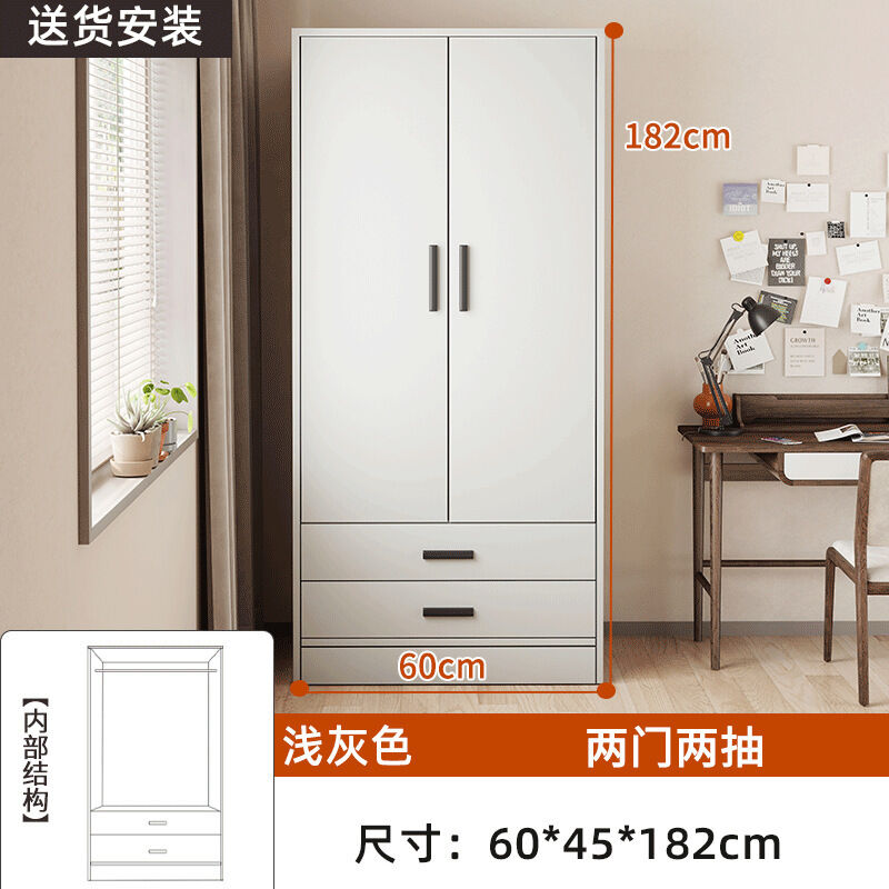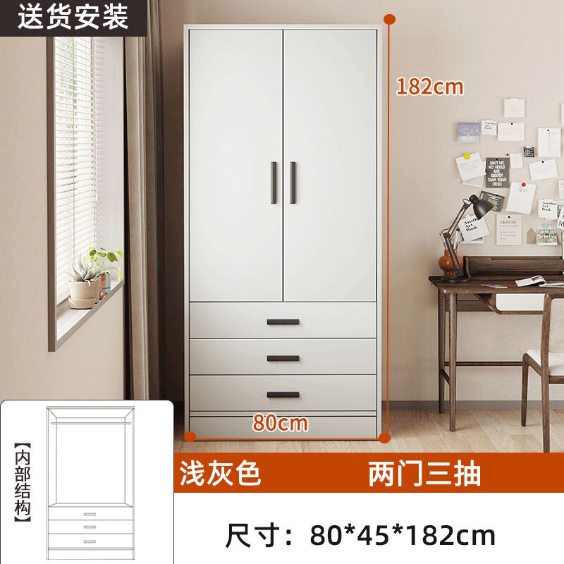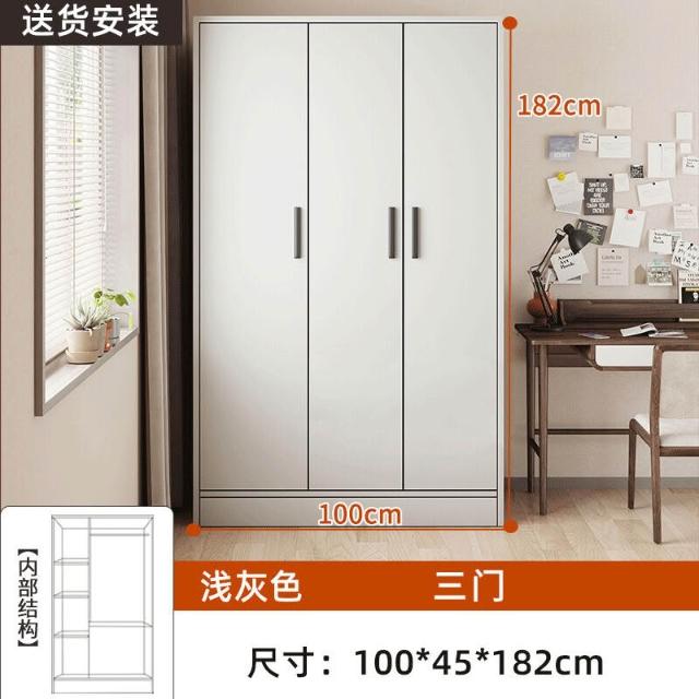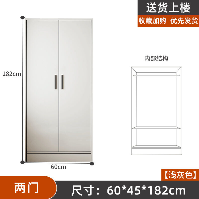 掛衣櫥收納用單人衣櫃經濟型臥室出租房組裝家用公寓儲物櫃淺灰色