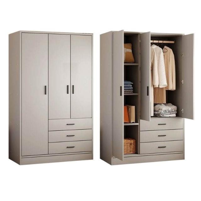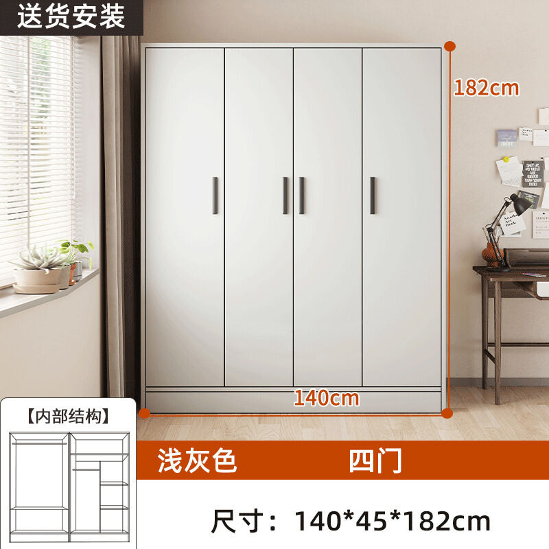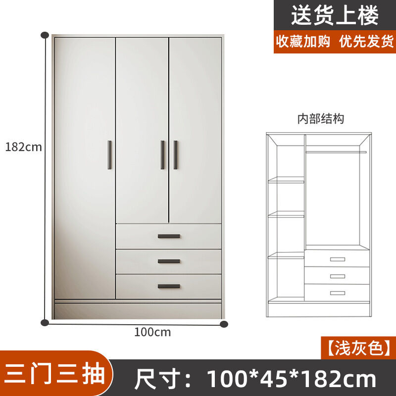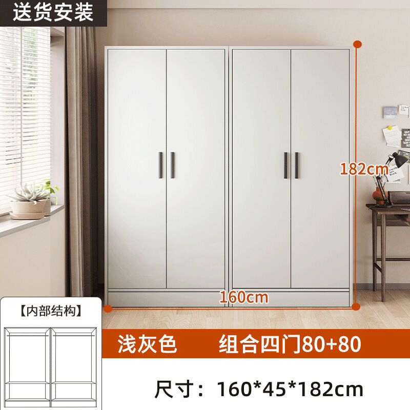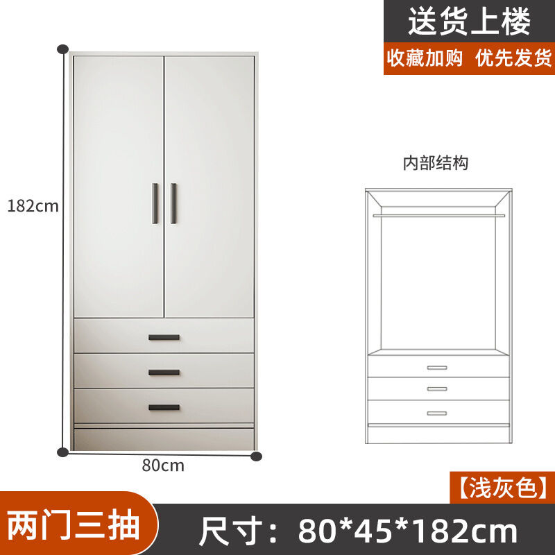 掛衣櫥收納用單人衣櫃經濟型臥室出租房組裝家用公寓儲物櫃淺灰色