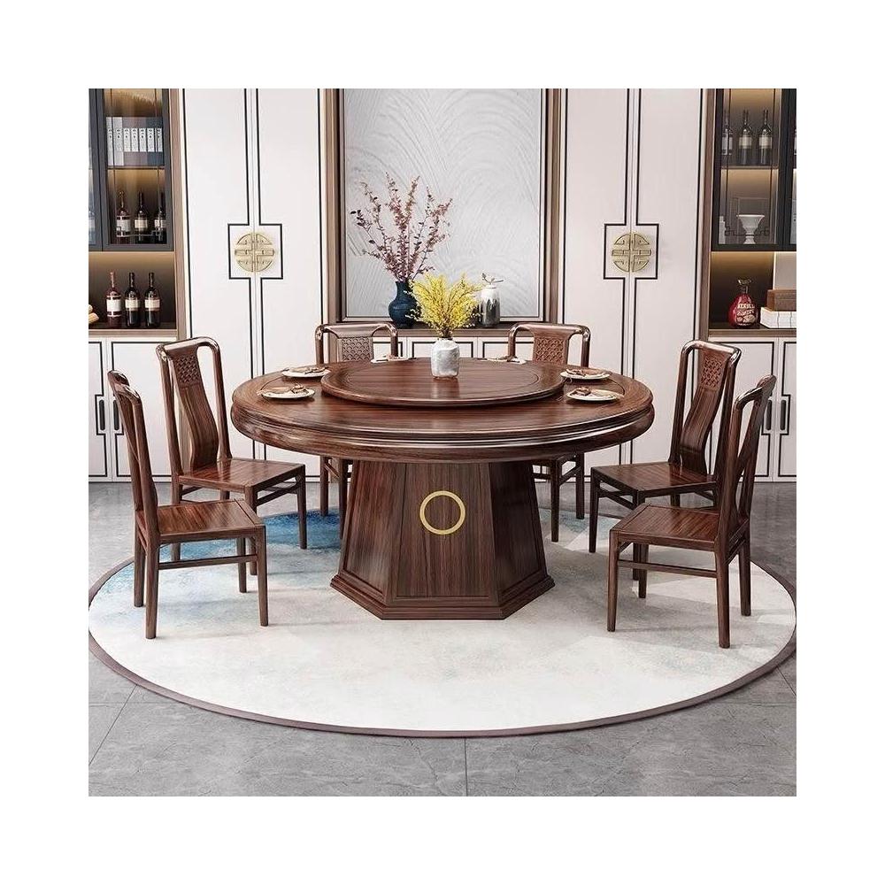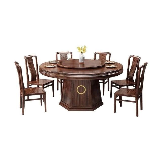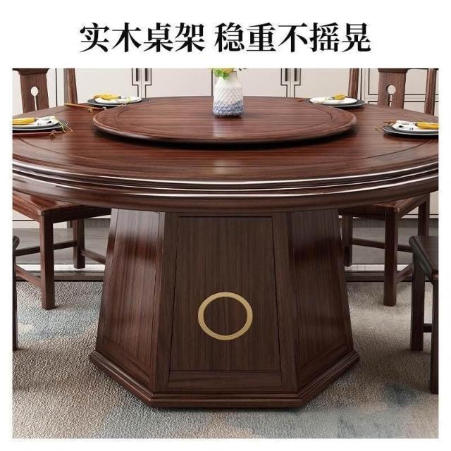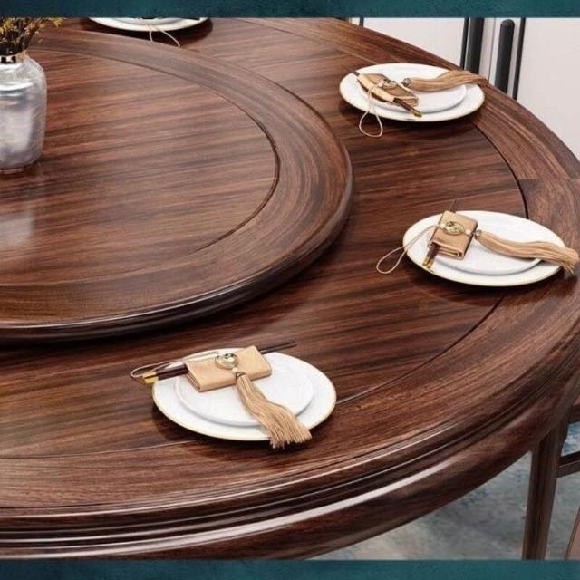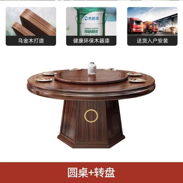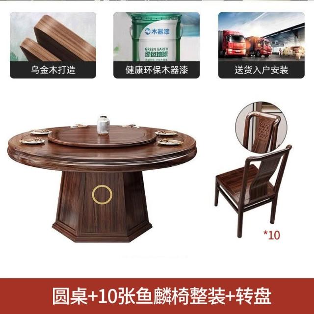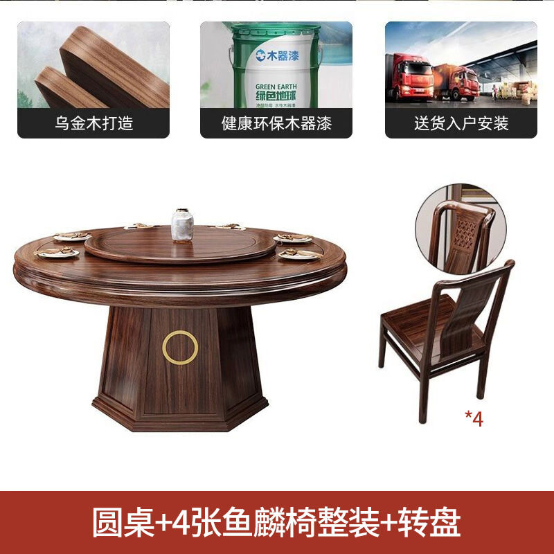 烏金木圓餐桌帶轉盤現代中式家用餐廳大尺寸全實木餐桌椅組合飯桌