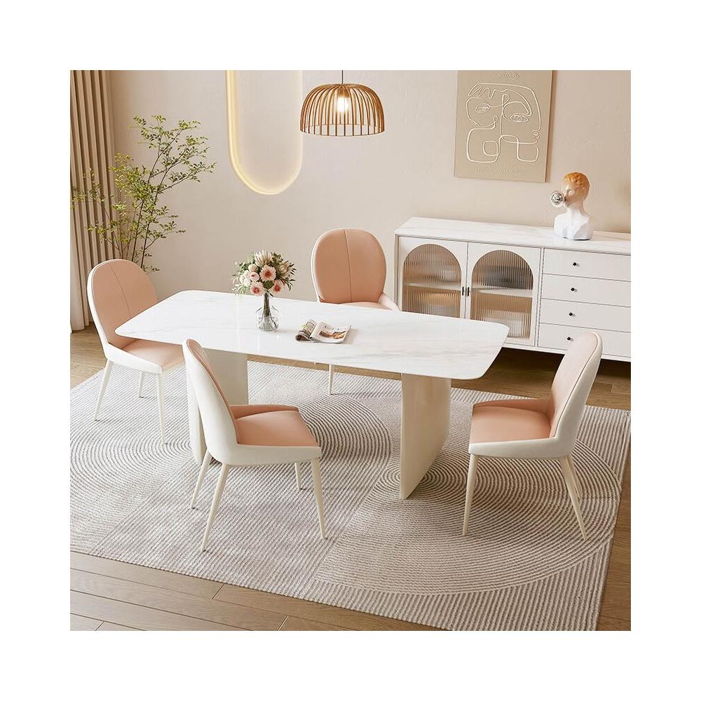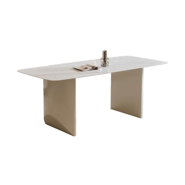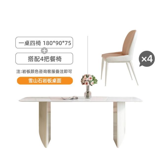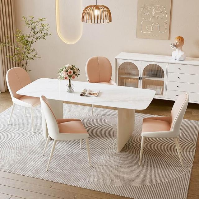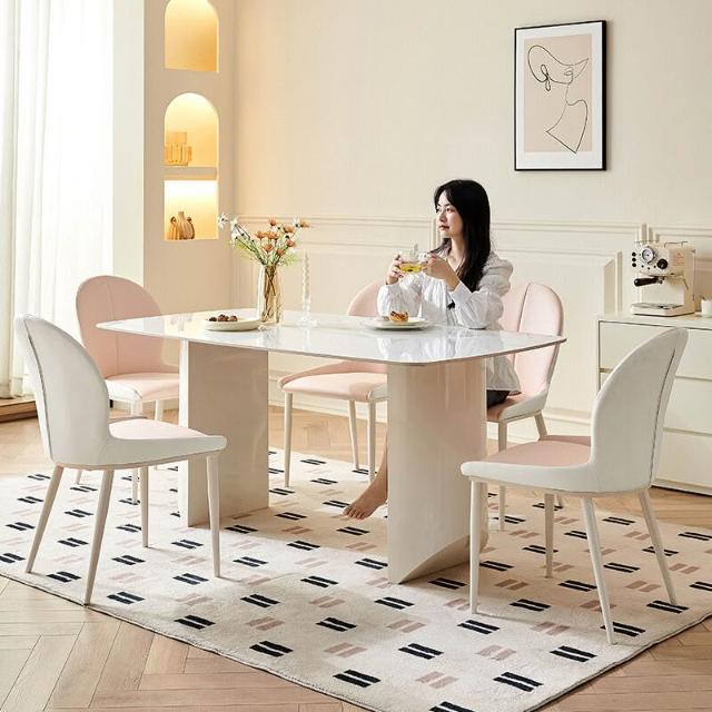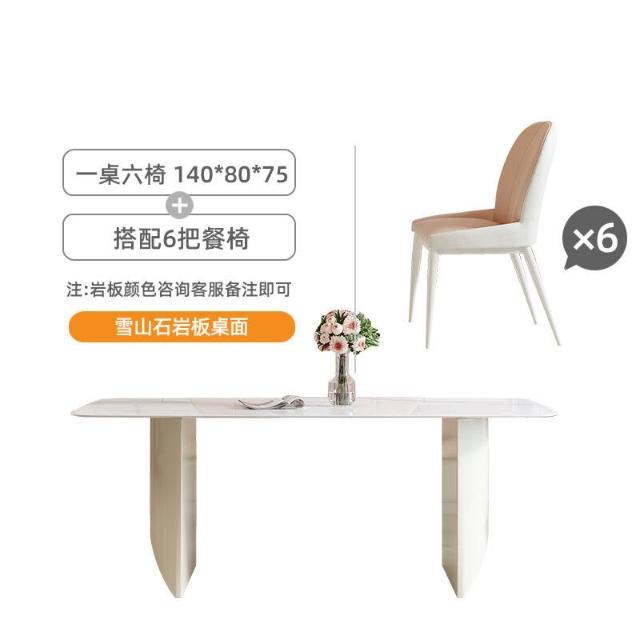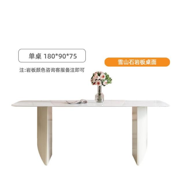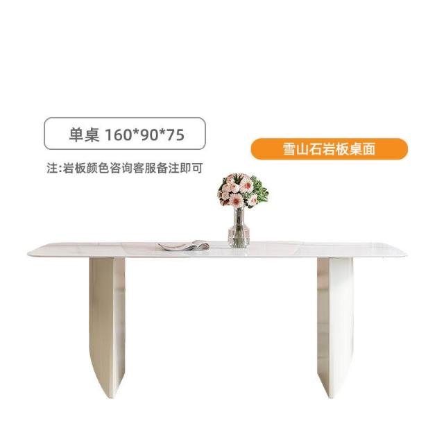 包郵巖板餐桌奶油風白色簡約家用小戶型現代極簡長方形餐桌椅子