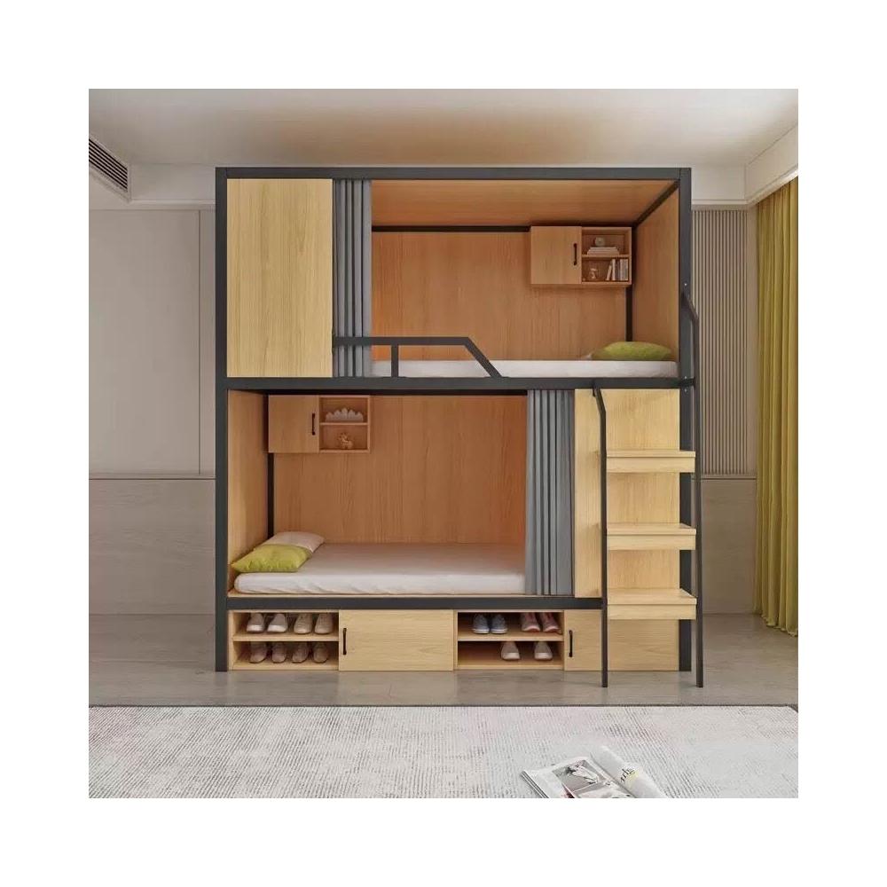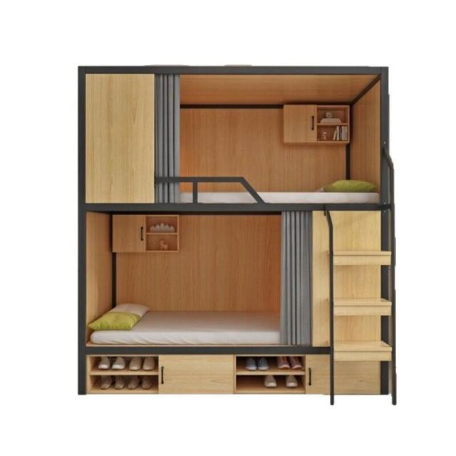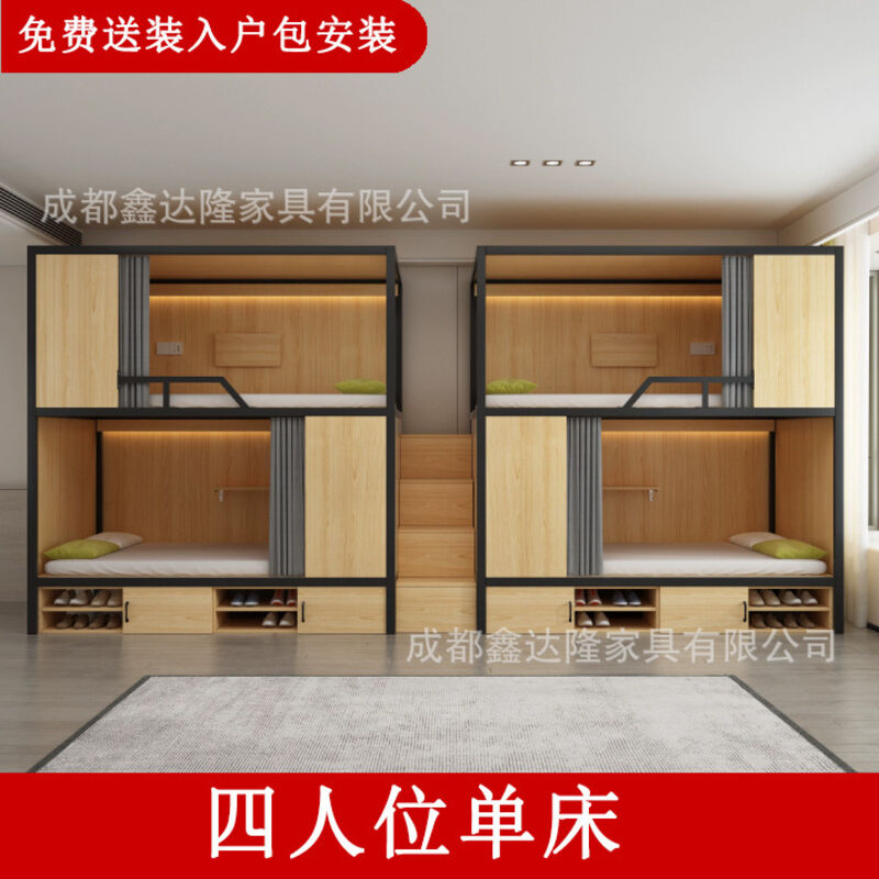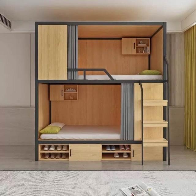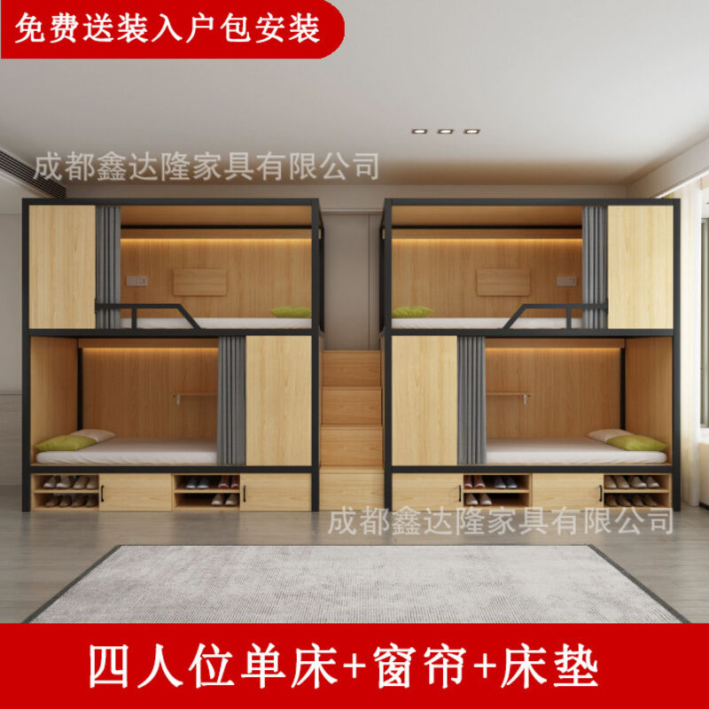 上下鋪雙層床帶窗簾上下床學校雙人太空艙民宿電競酒店鋼木床帶櫃