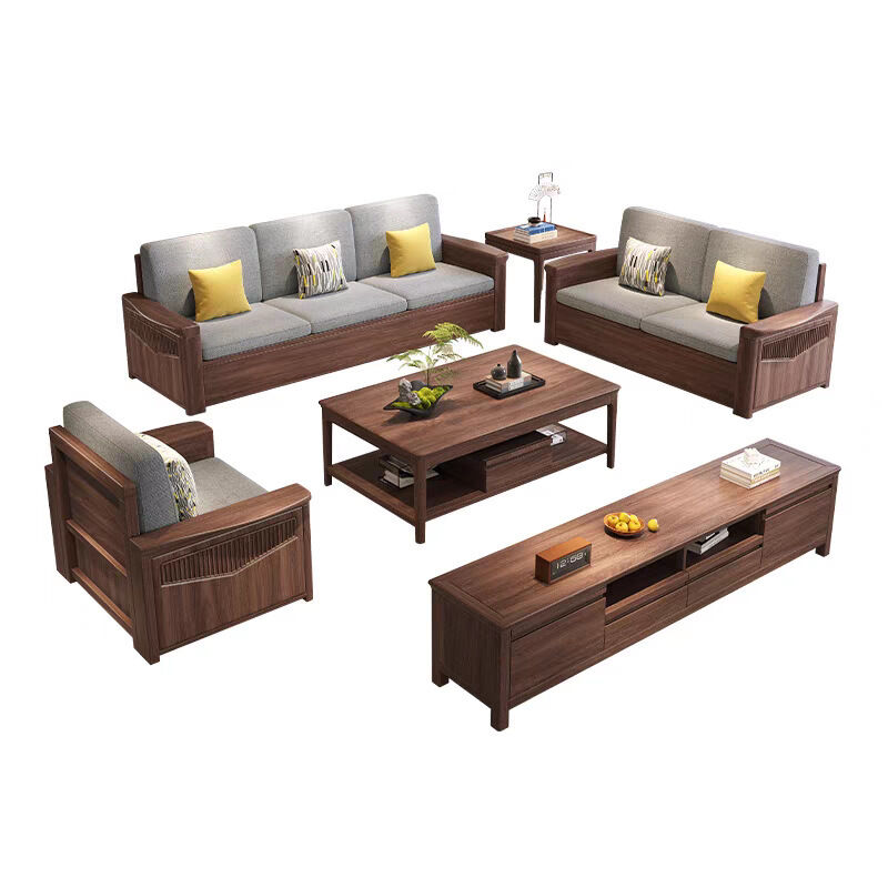 黑胡桃木實木沙發新中式高箱儲物沙發大小戶型家用客廳組合家具