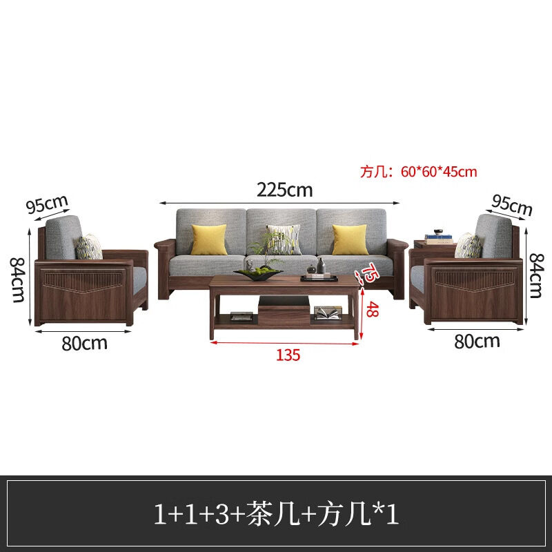 黑胡桃木實木沙發新中式高箱儲物沙發大小戶型家用客廳組合家具