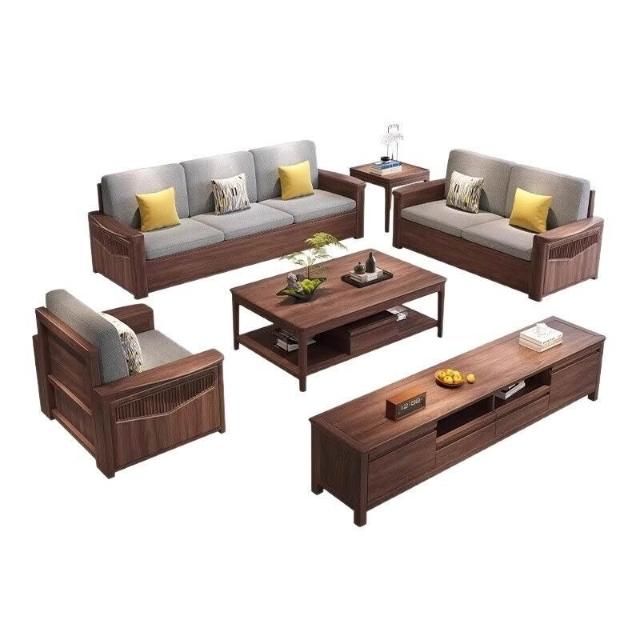 黑胡桃木實木沙發新中式高箱儲物沙發大小戶型家用客廳組合家具