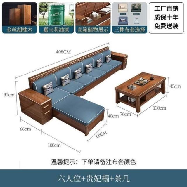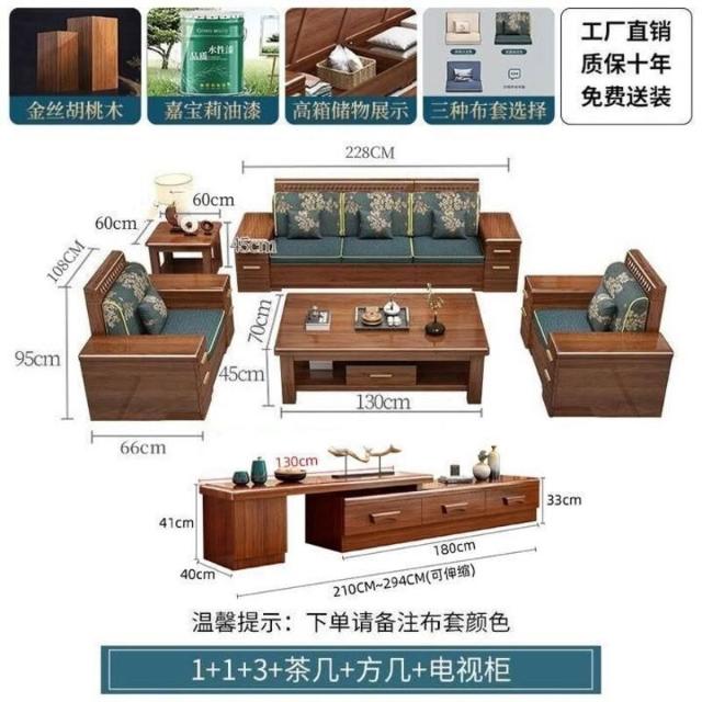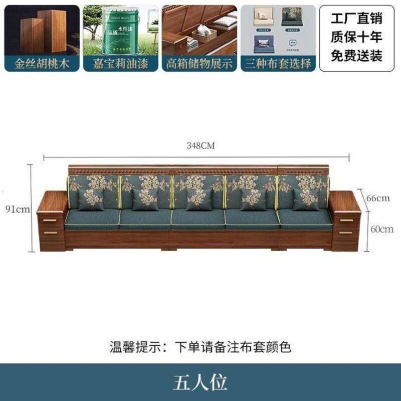 金絲胡桃木實木沙發組合新中式客廳大小戶型冬夏兩用儲物高靠沙發