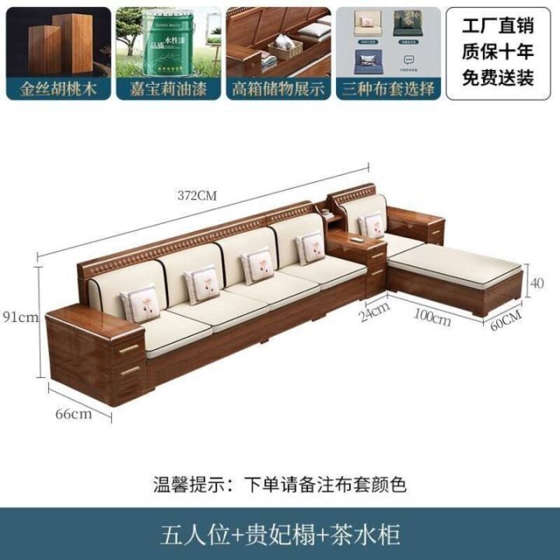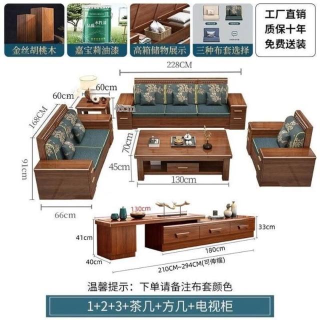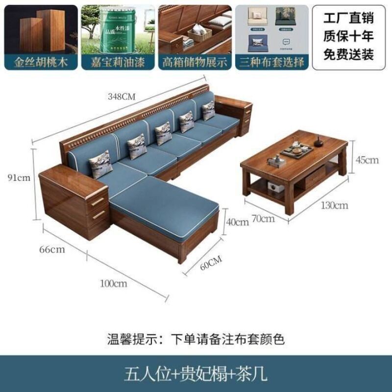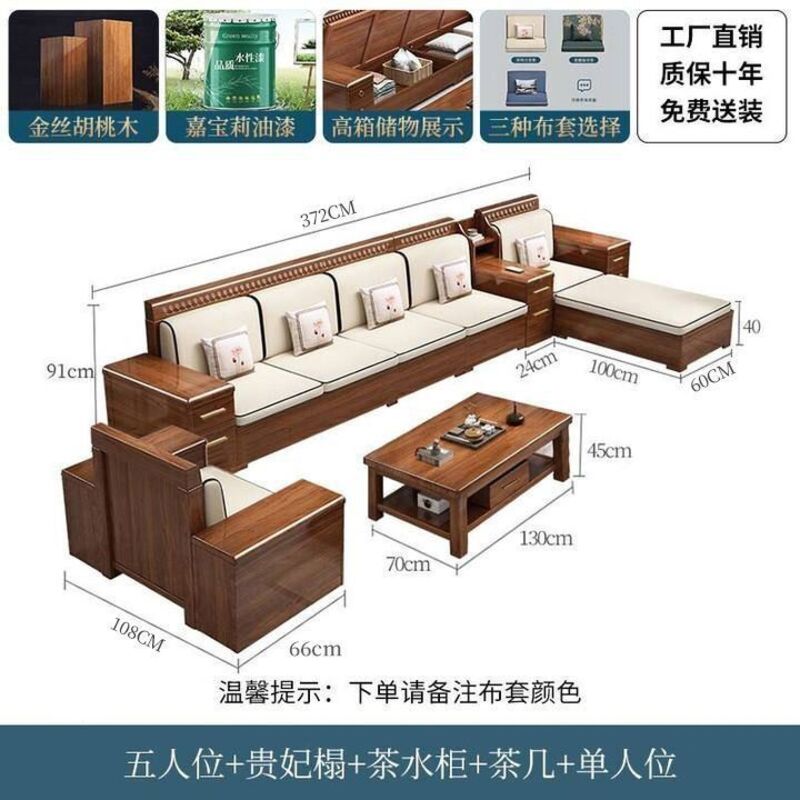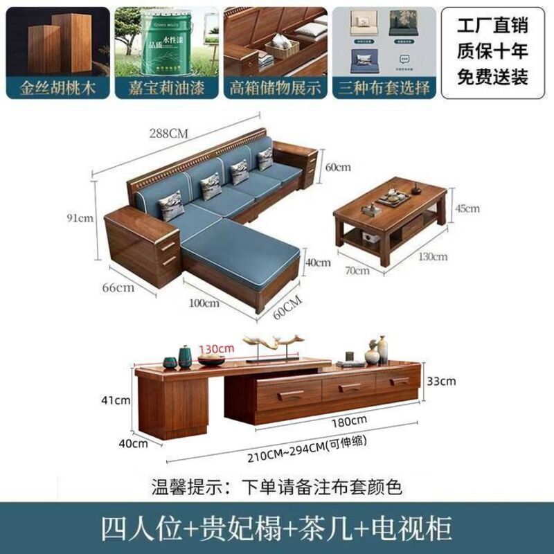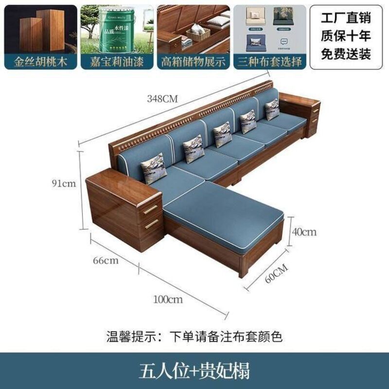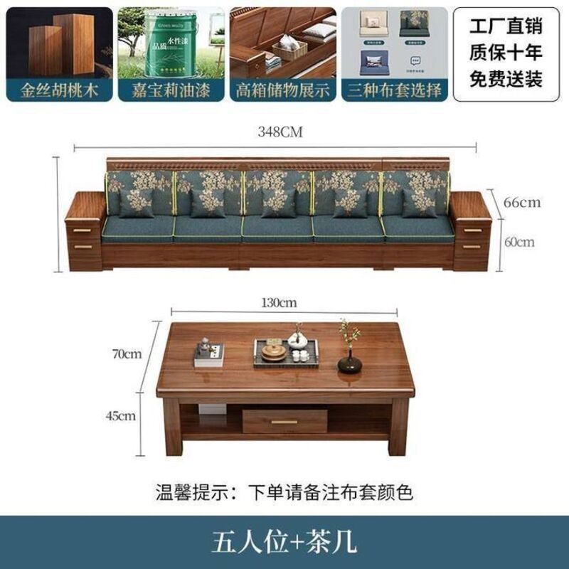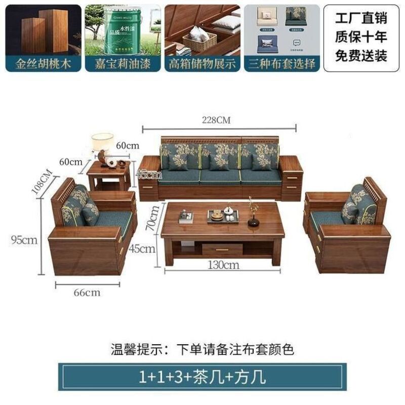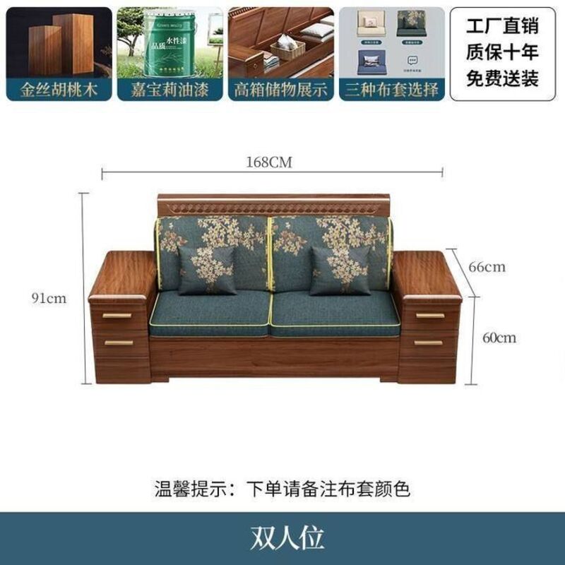 金絲胡桃木實木沙發組合新中式客廳大小戶型冬夏兩用儲物高靠沙發