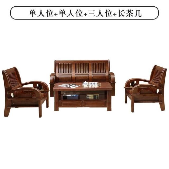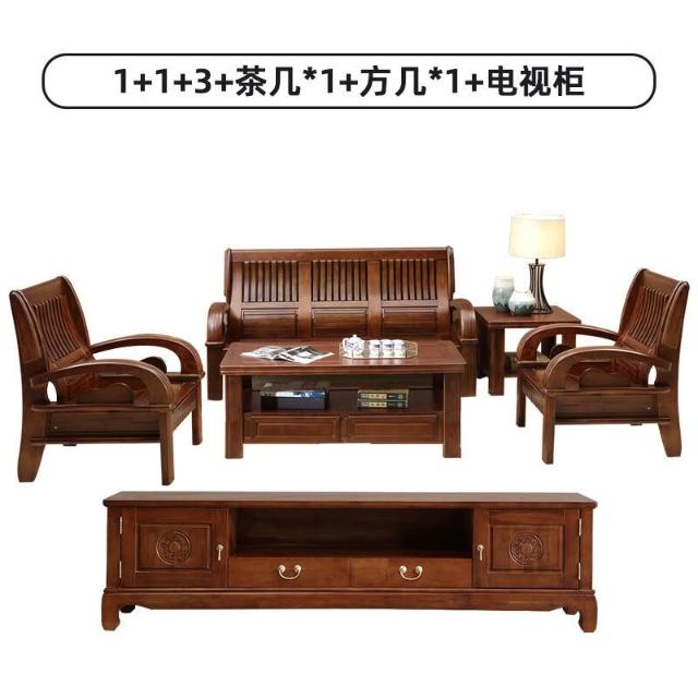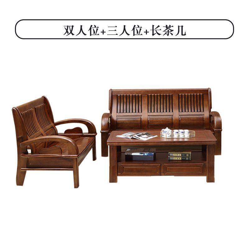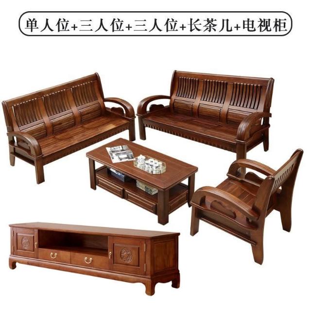 新中式全實木沙發組合客廳家具香樟木沙發123農村經濟型木質沙發