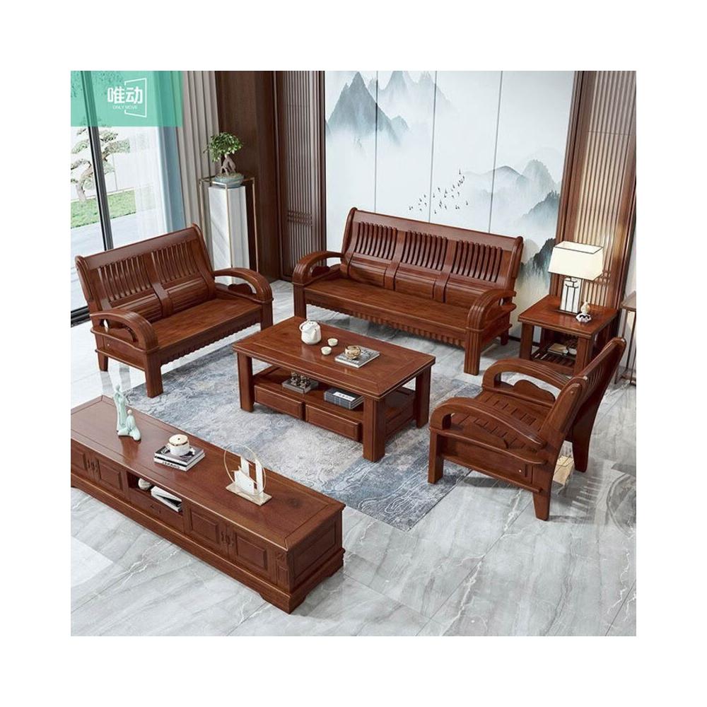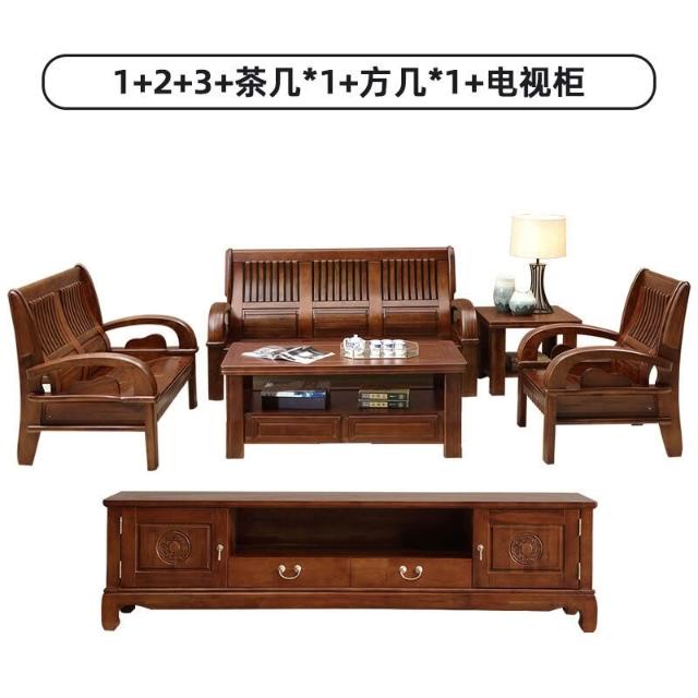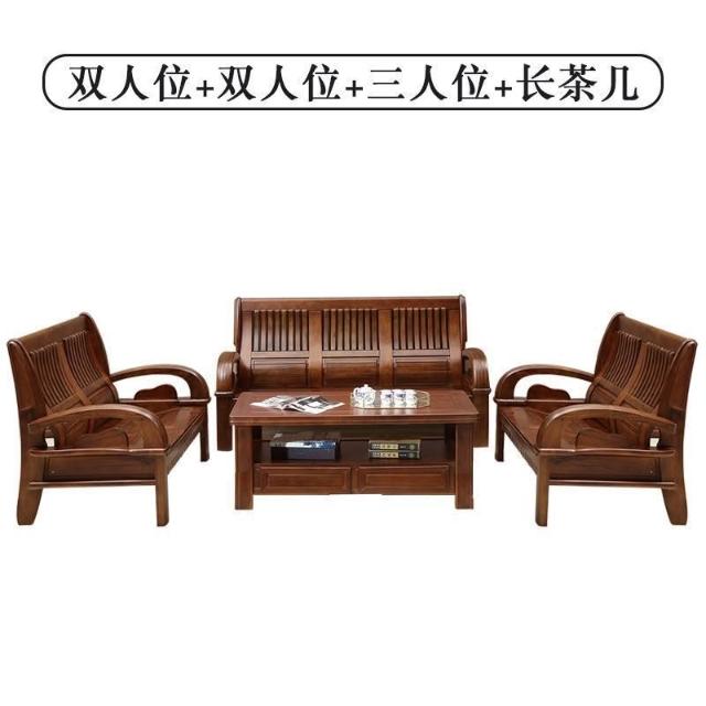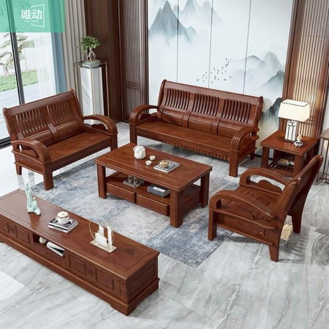 新中式全實木沙發組合客廳家具香樟木沙發123農村經濟型木質沙發