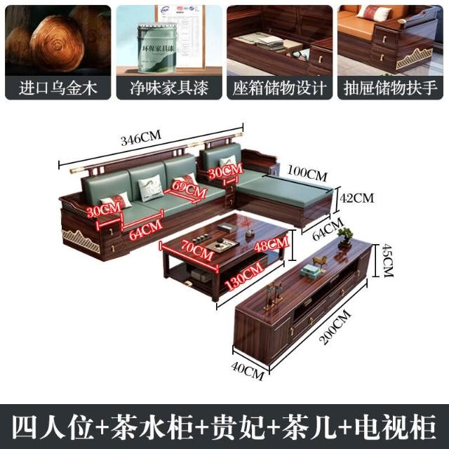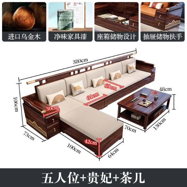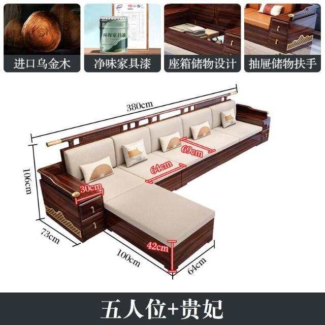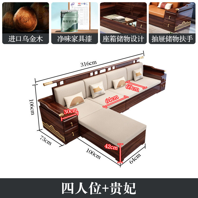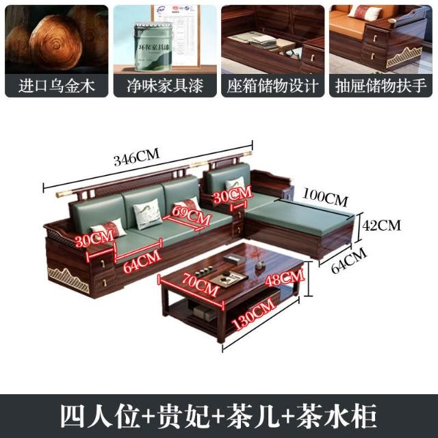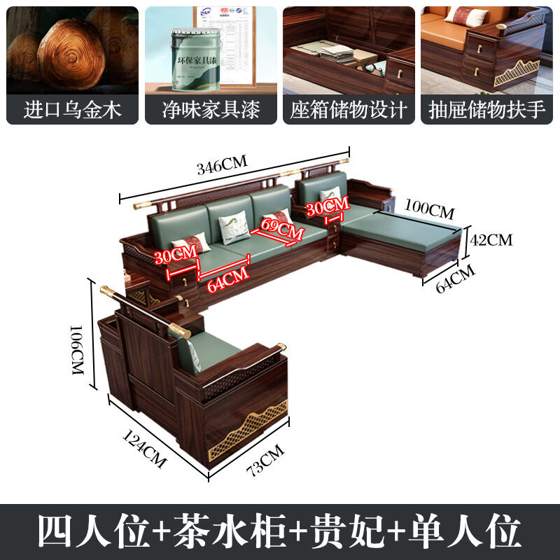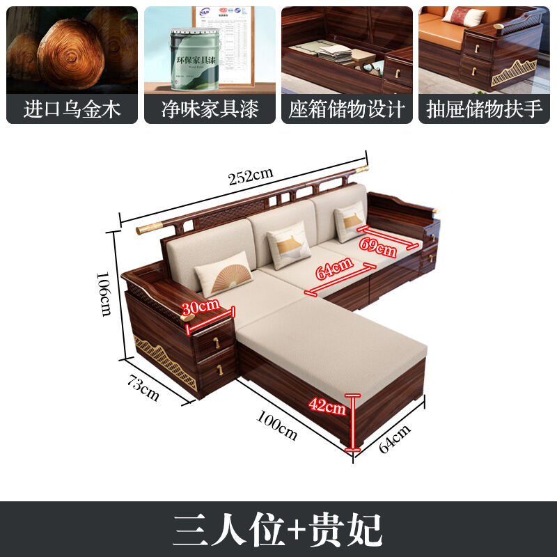 新中式烏金木實木沙發現代簡約客廳冬夏兩用貴妃轉角儲物家具組合