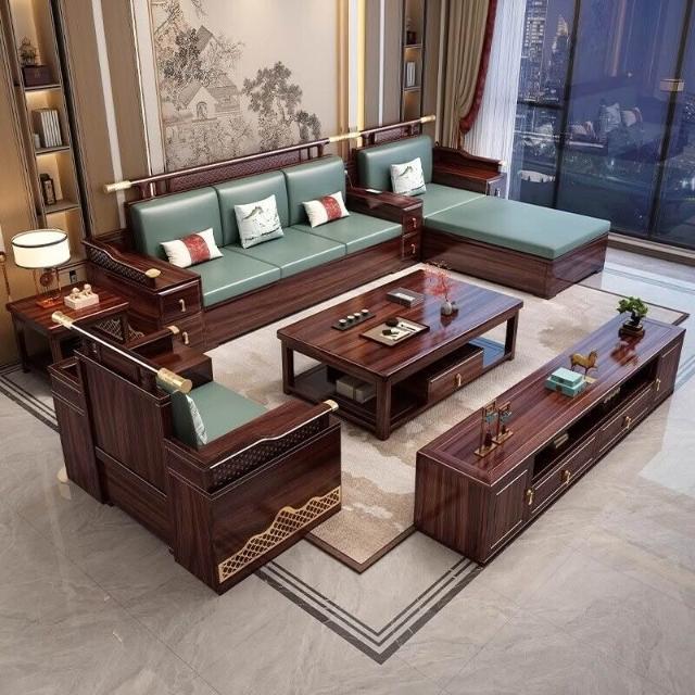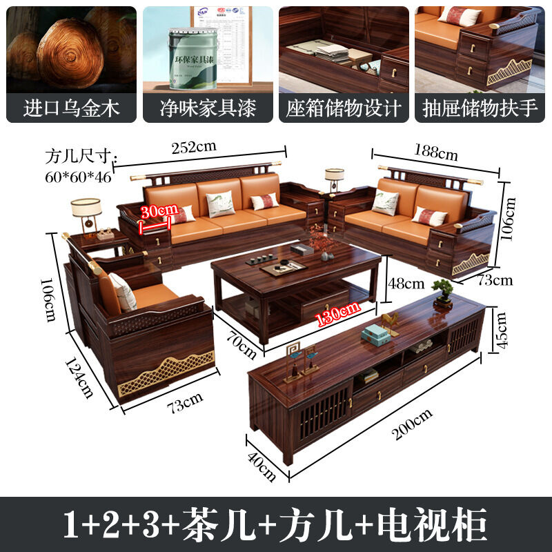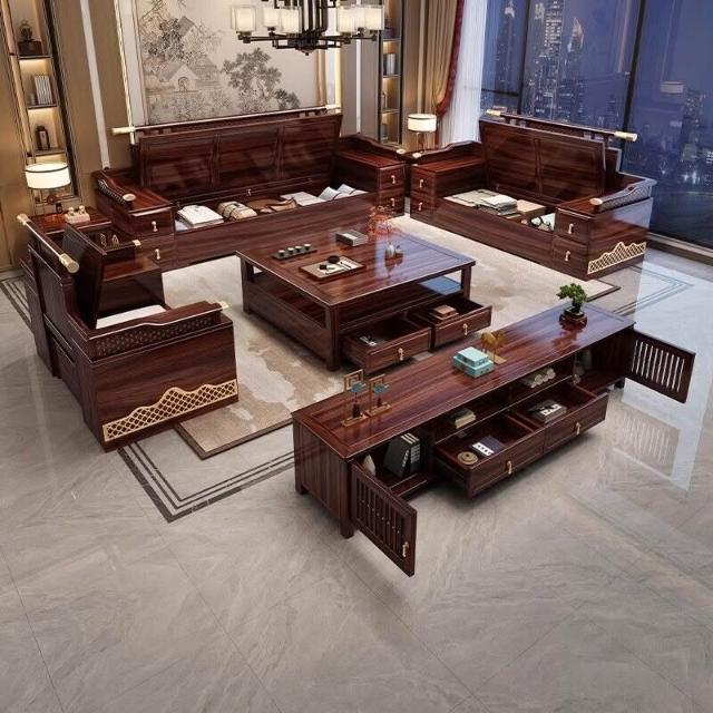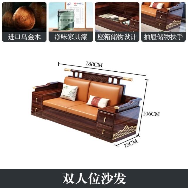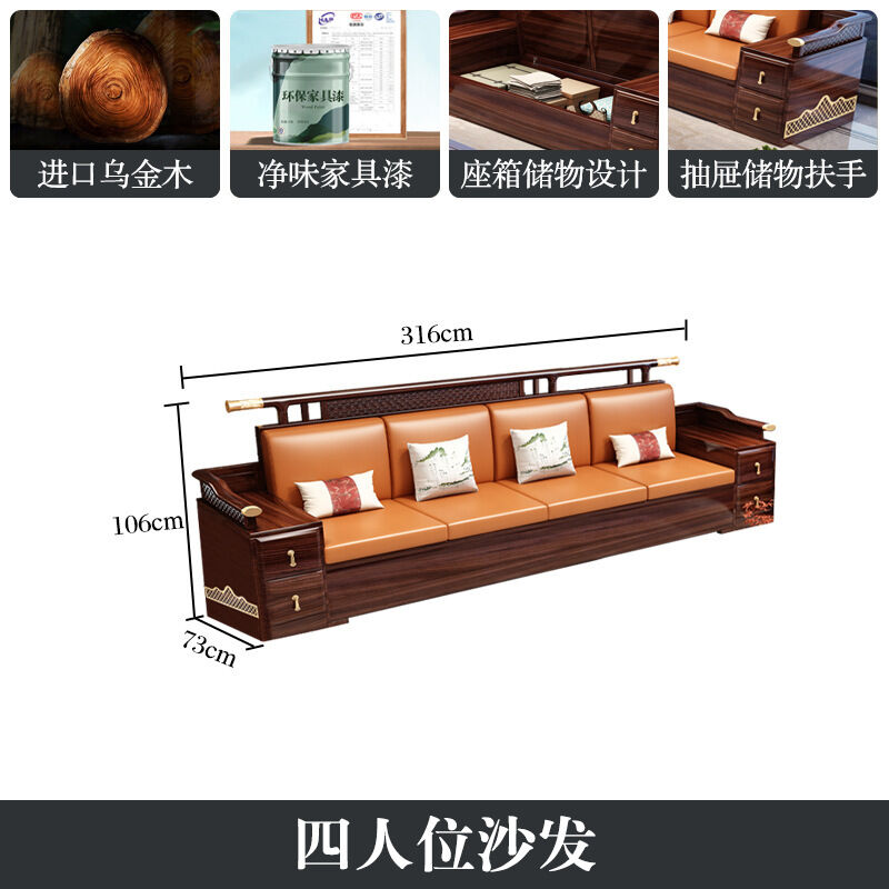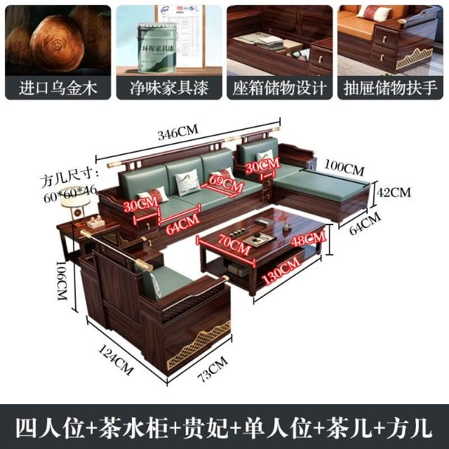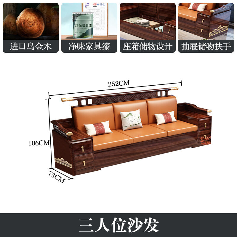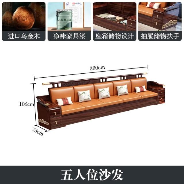 新中式烏金木實木沙發現代簡約客廳冬夏兩用貴妃轉角儲物家具組合