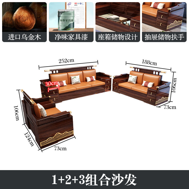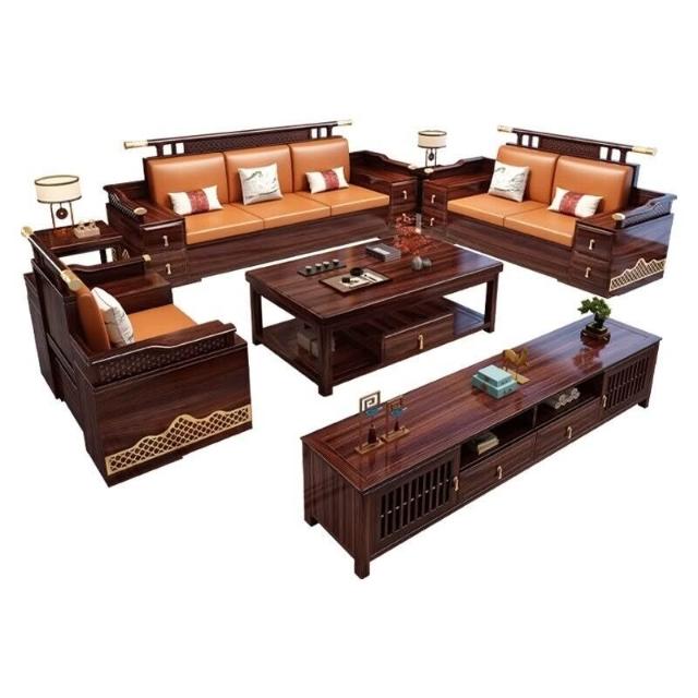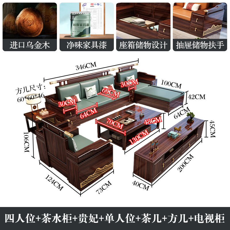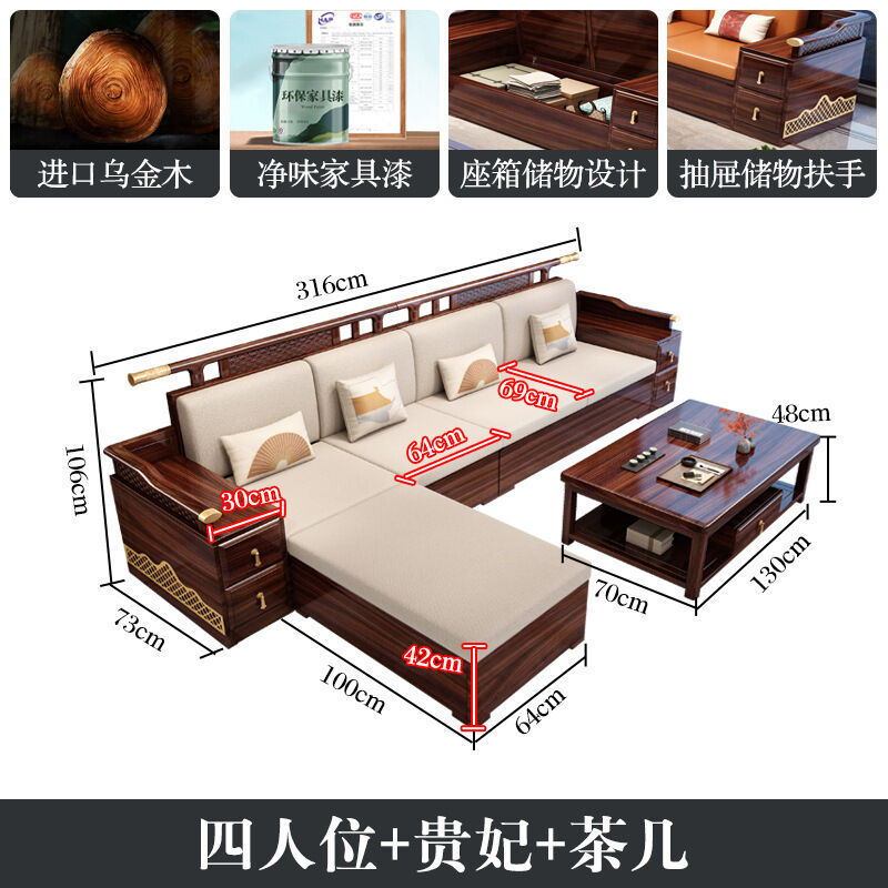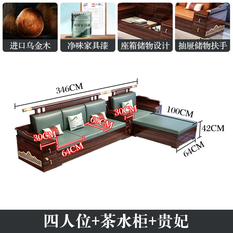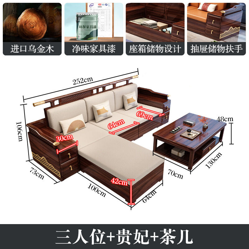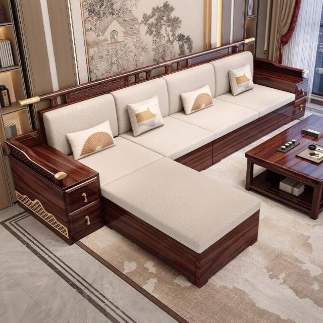 新中式烏金木實木沙發現代簡約客廳冬夏兩用貴妃轉角儲物家具組合
