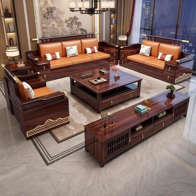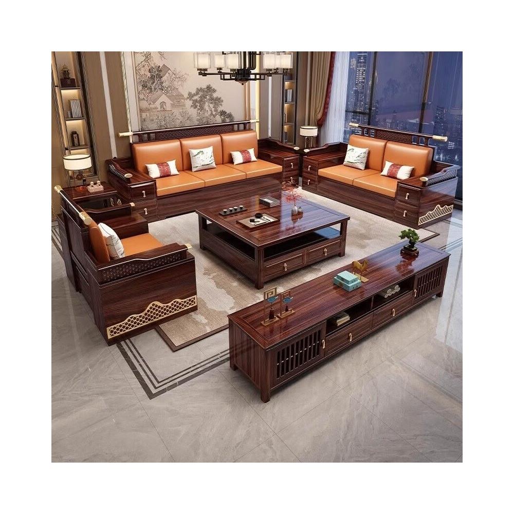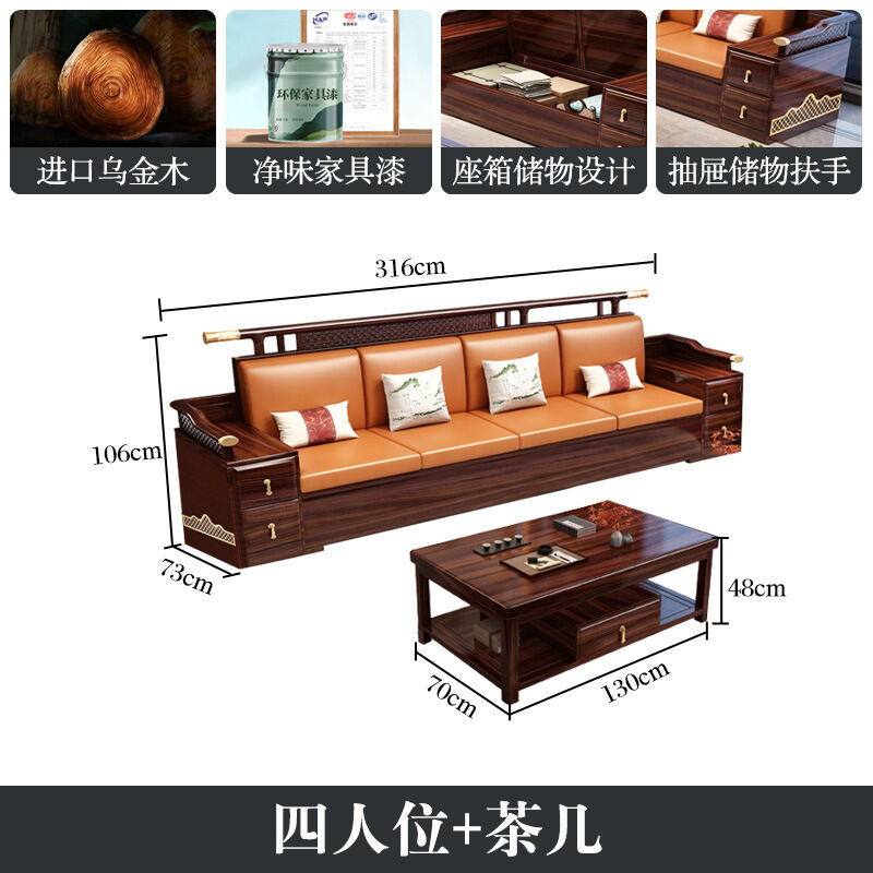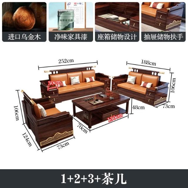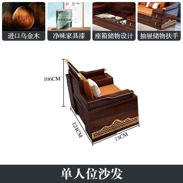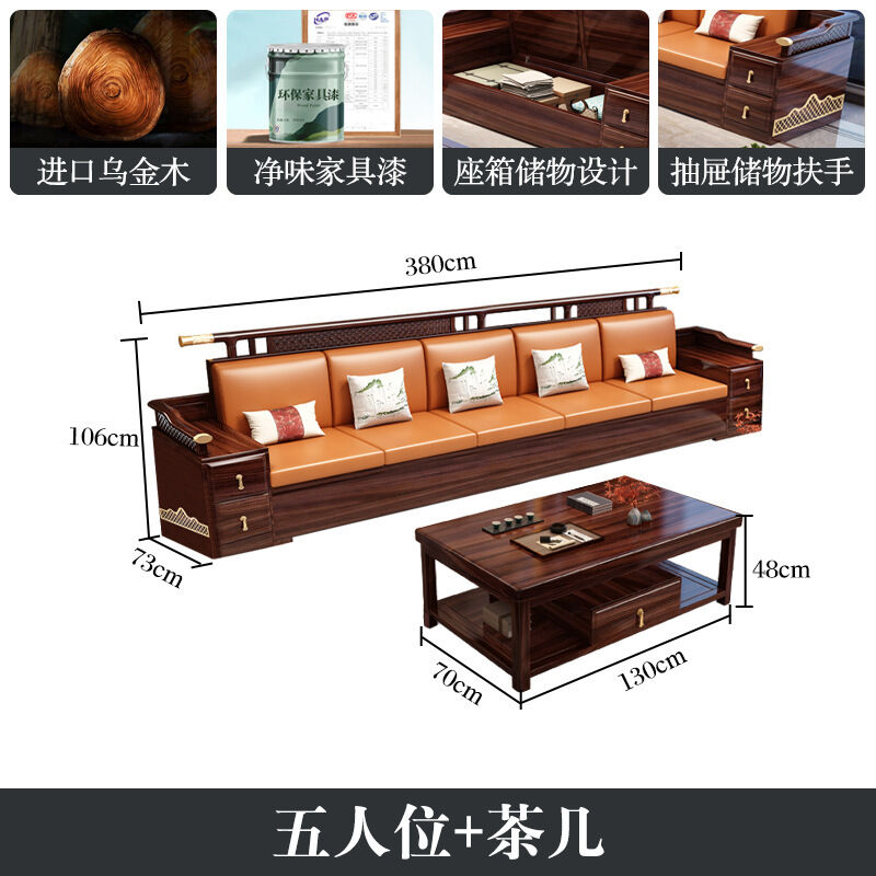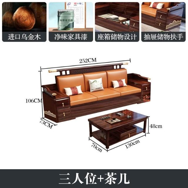 新中式烏金木實木沙發現代簡約客廳冬夏兩用貴妃轉角儲物家具組合