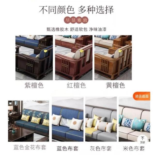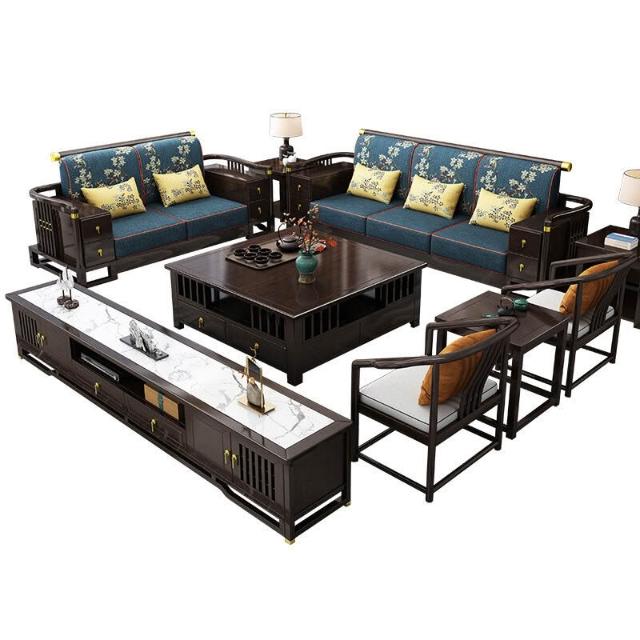 新中式輕奢全實木沙發組合現代中式客廳家具套裝木加布沙發新國潮