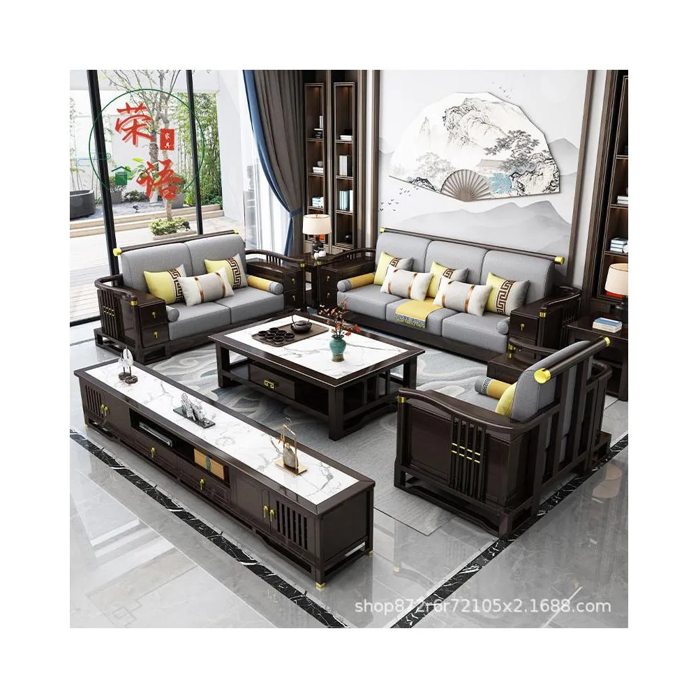 新中式輕奢全實木沙發組合現代中式客廳家具套裝木加布沙發新國潮