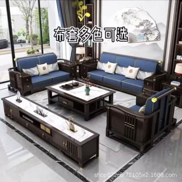 新中式輕奢全實木沙發組合現代中式客廳家具套裝木加布沙發新國潮