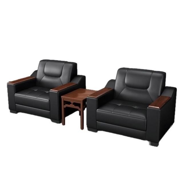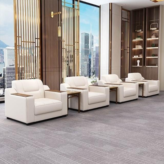 會議室接待沙發現代簡約洽談會議沙發貴賓商務牛皮單人位茶幾組合