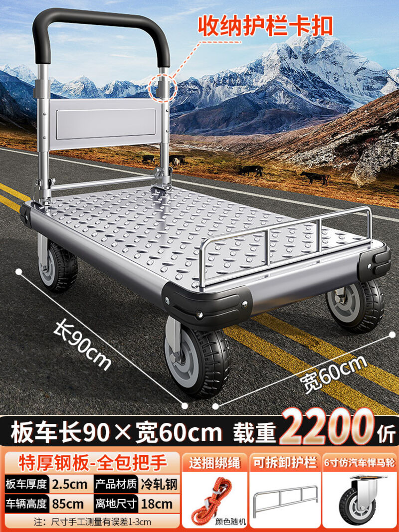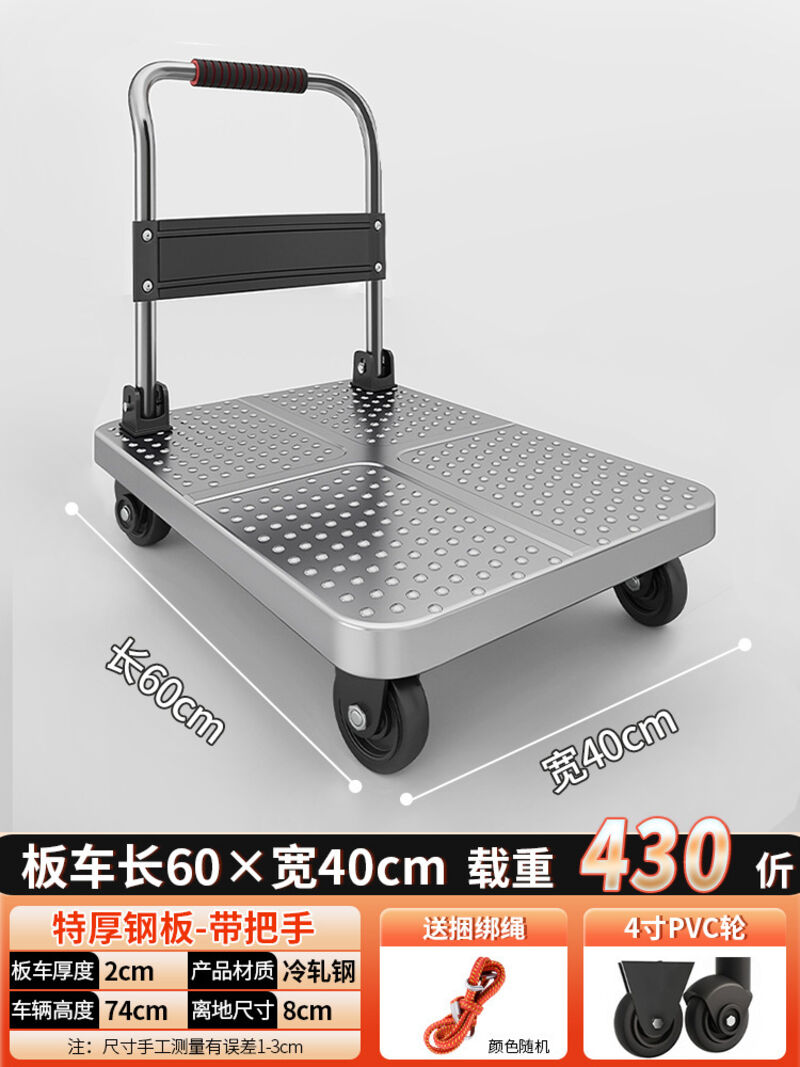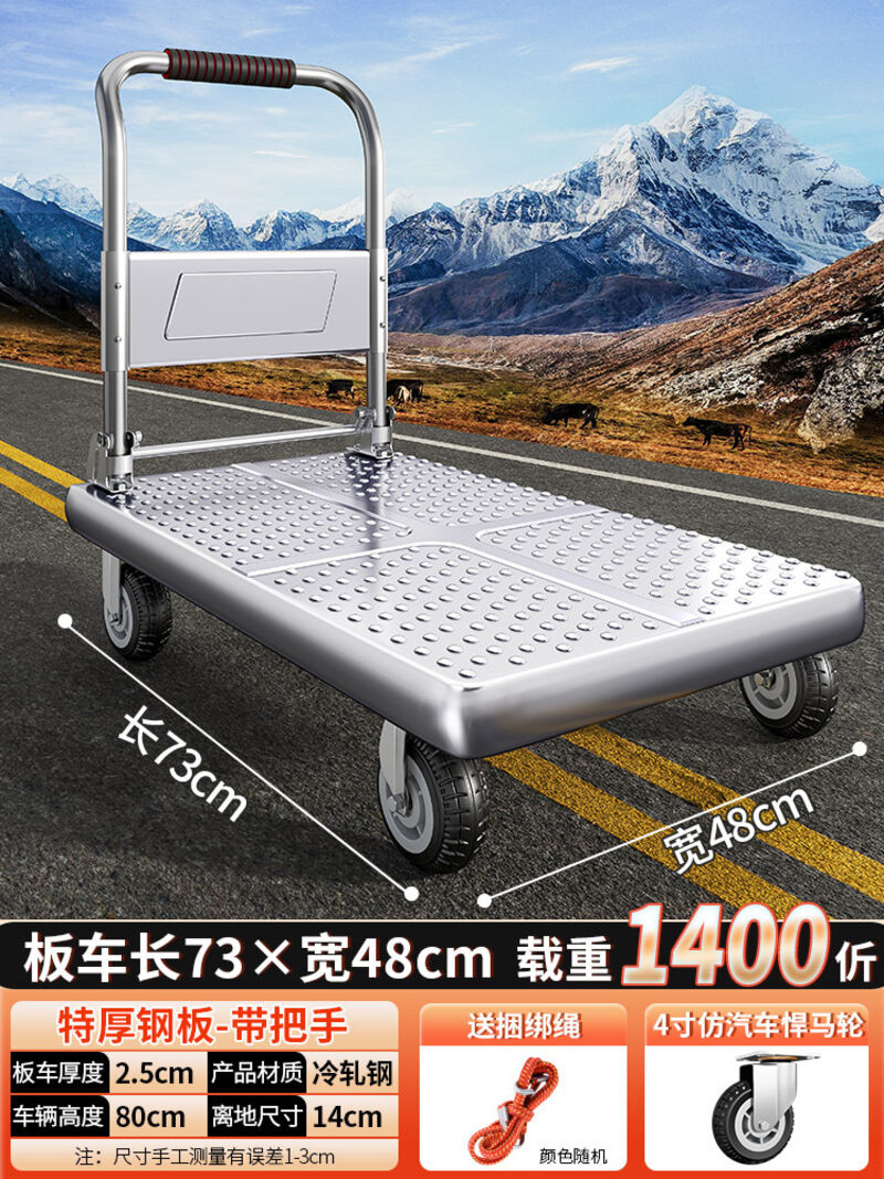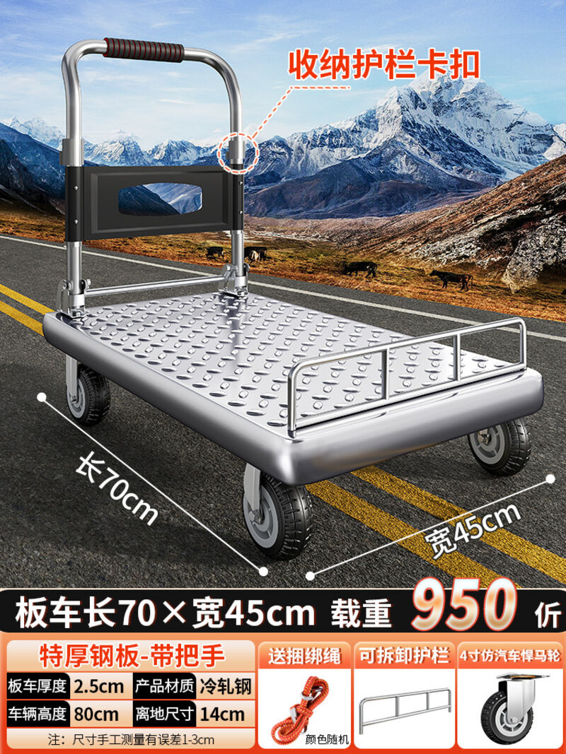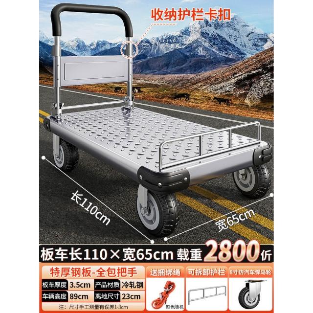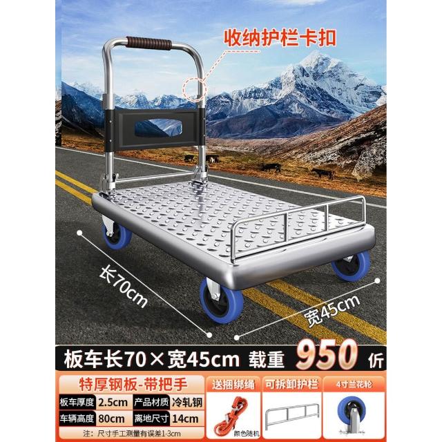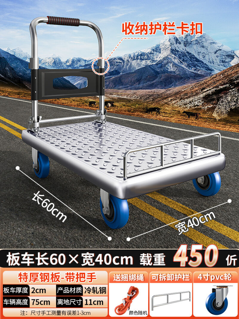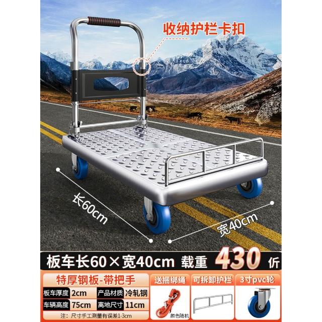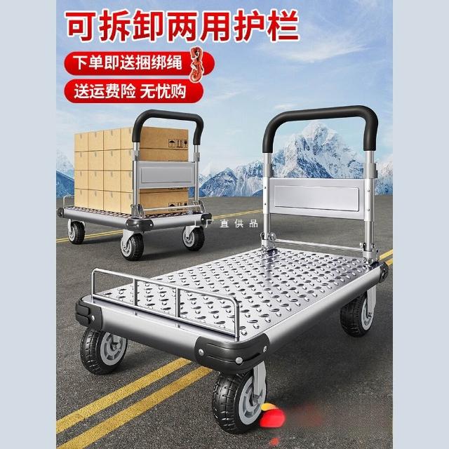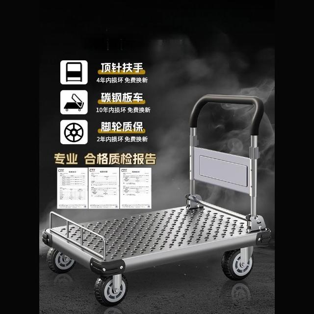 鋼板小推車拉貨手推車搬運車家用平板車便攜拖車折疊小拉車手拉車