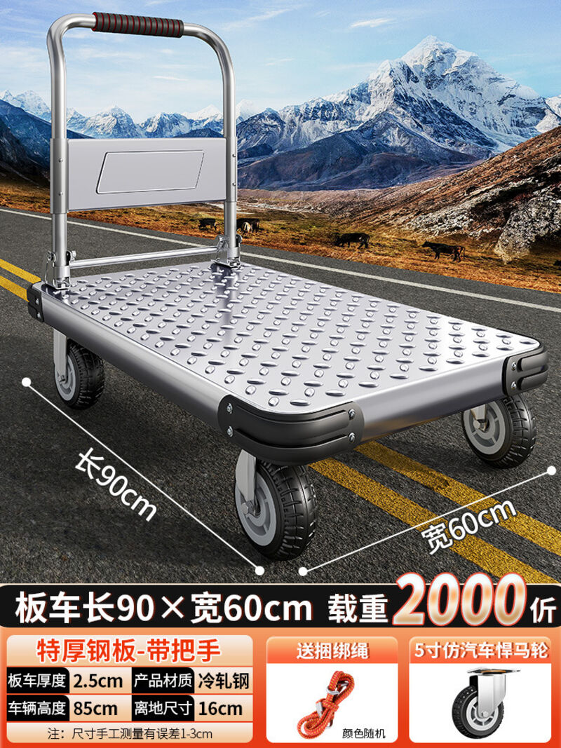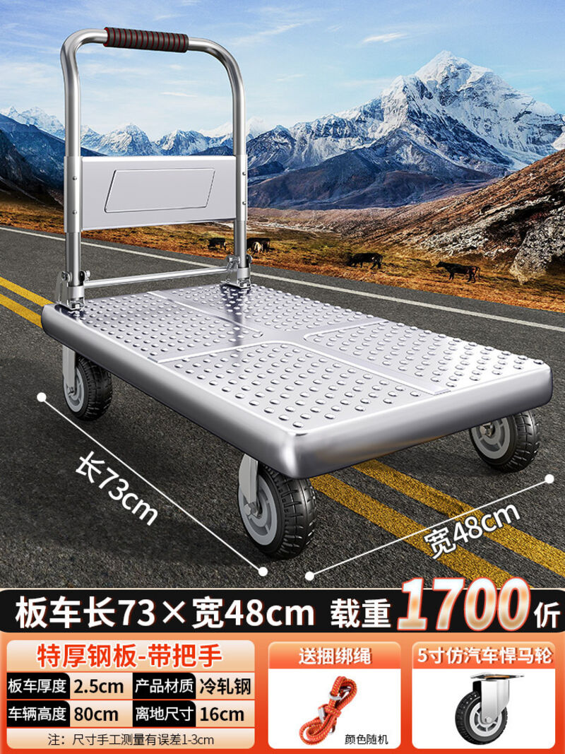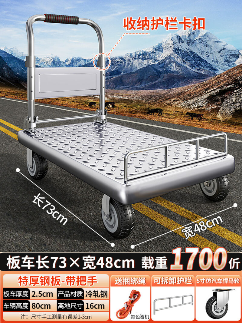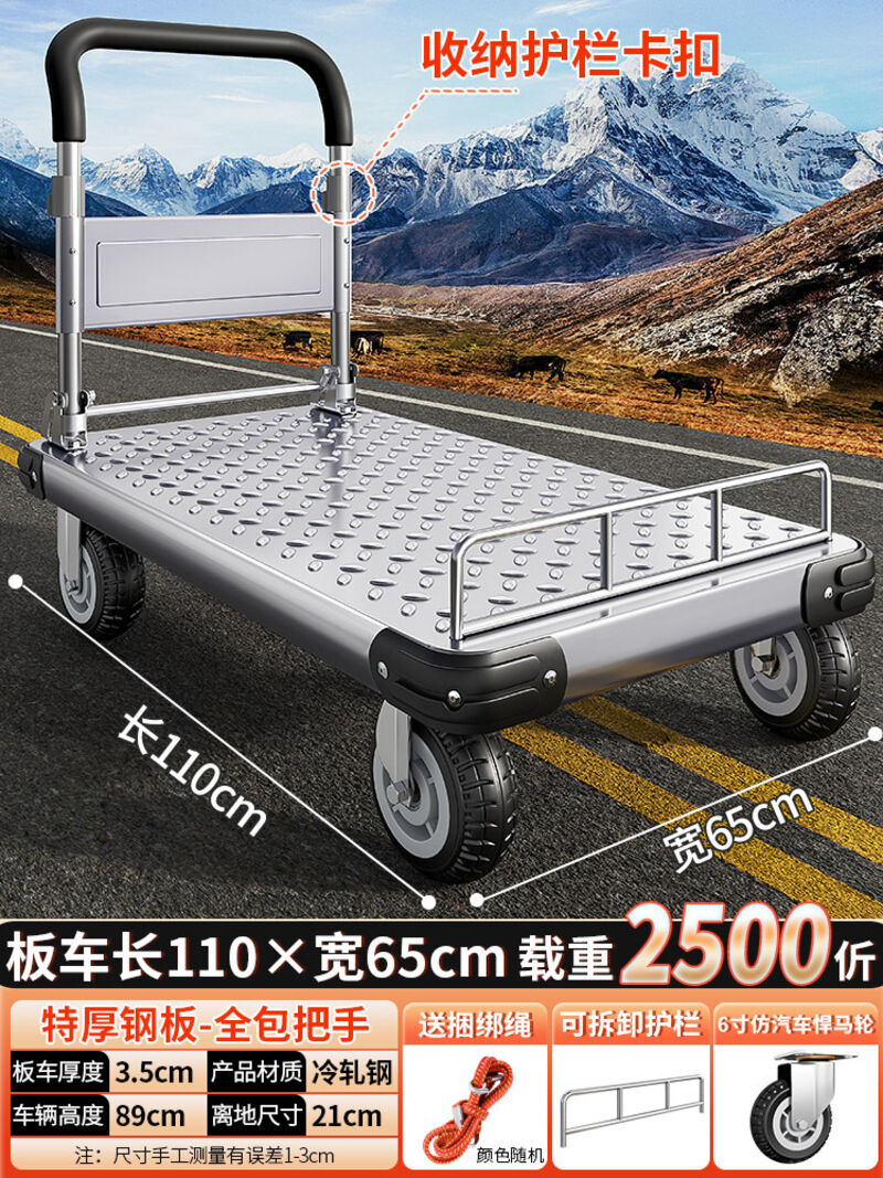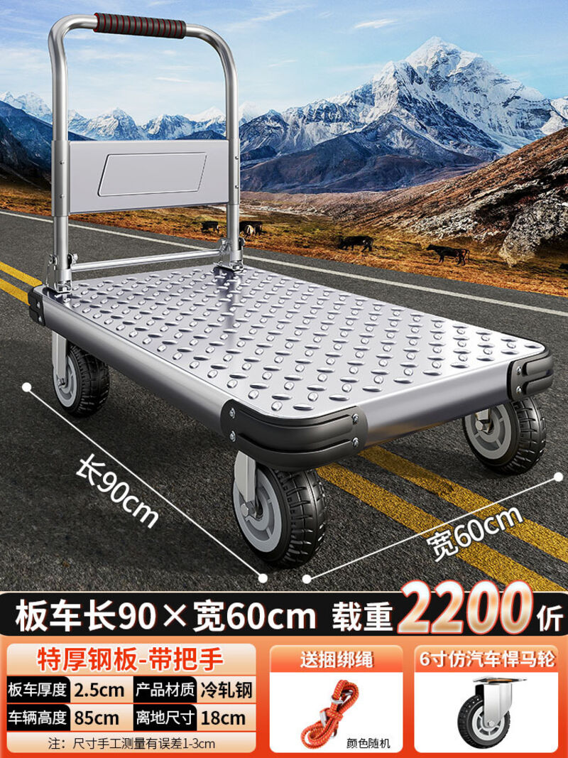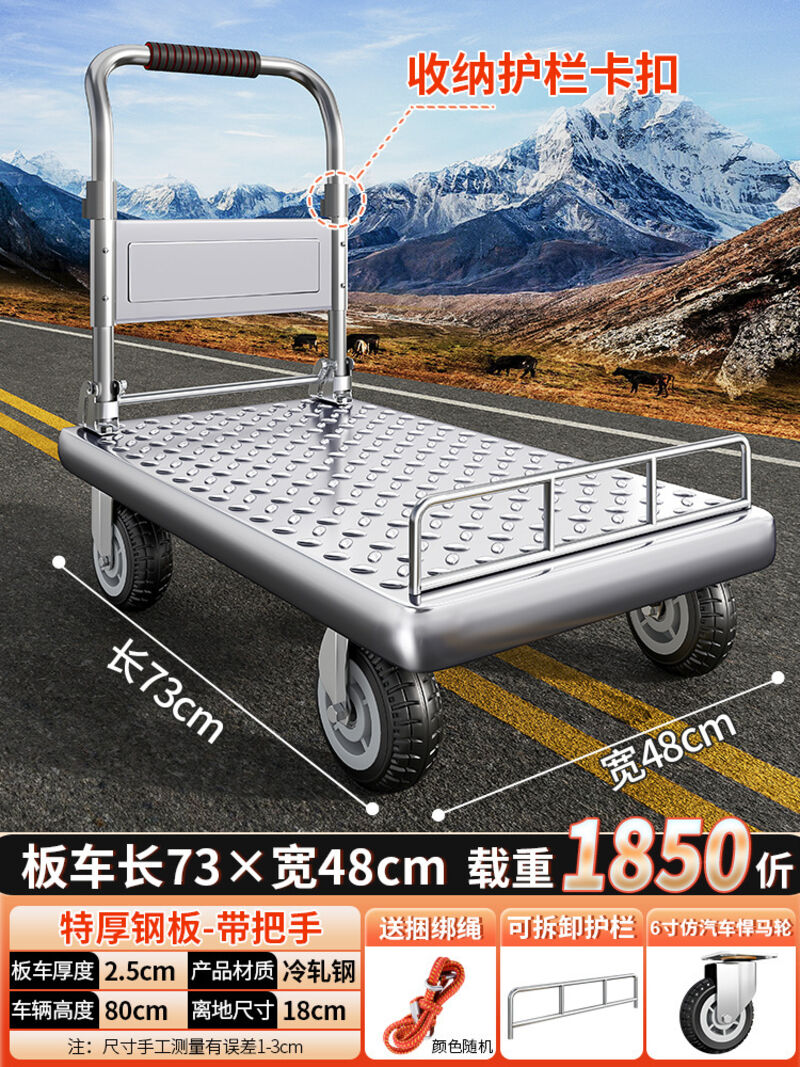 鋼板小推車拉貨手推車搬運車家用平板車便攜拖車折疊小拉車手拉車