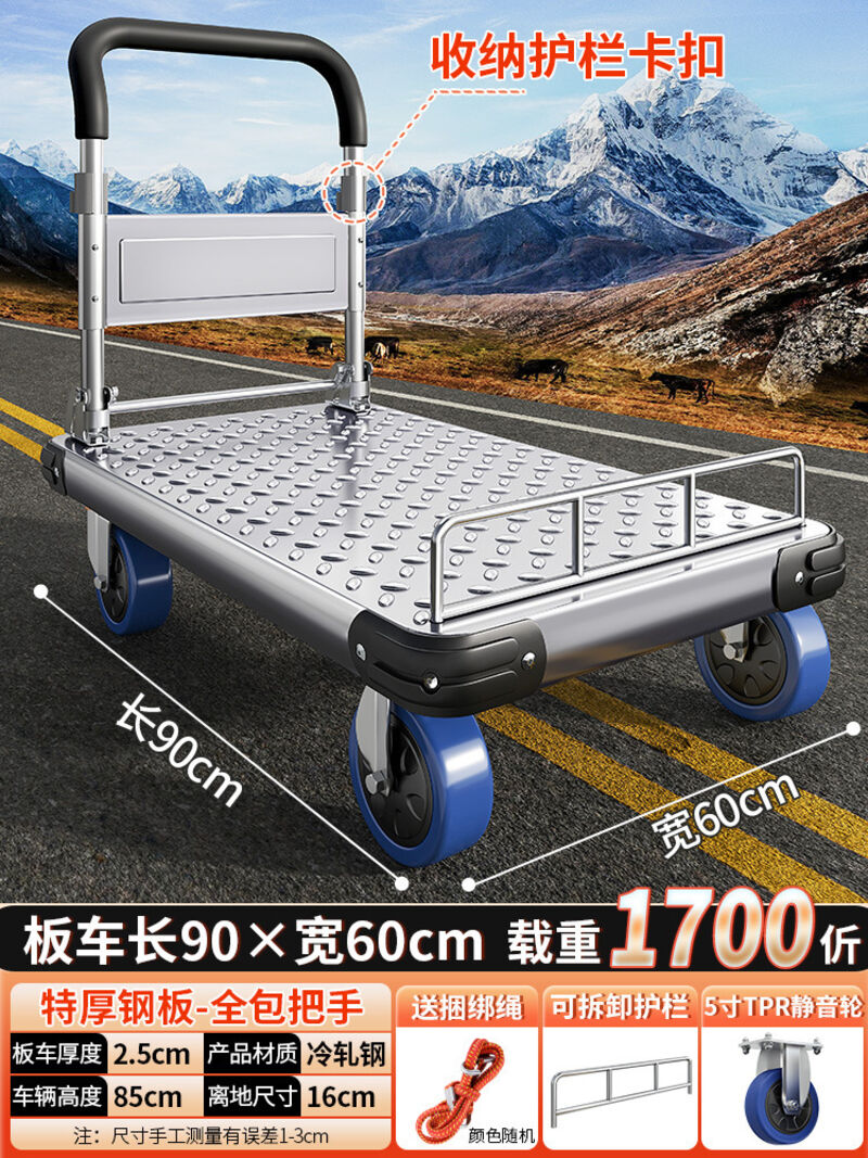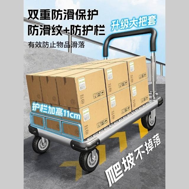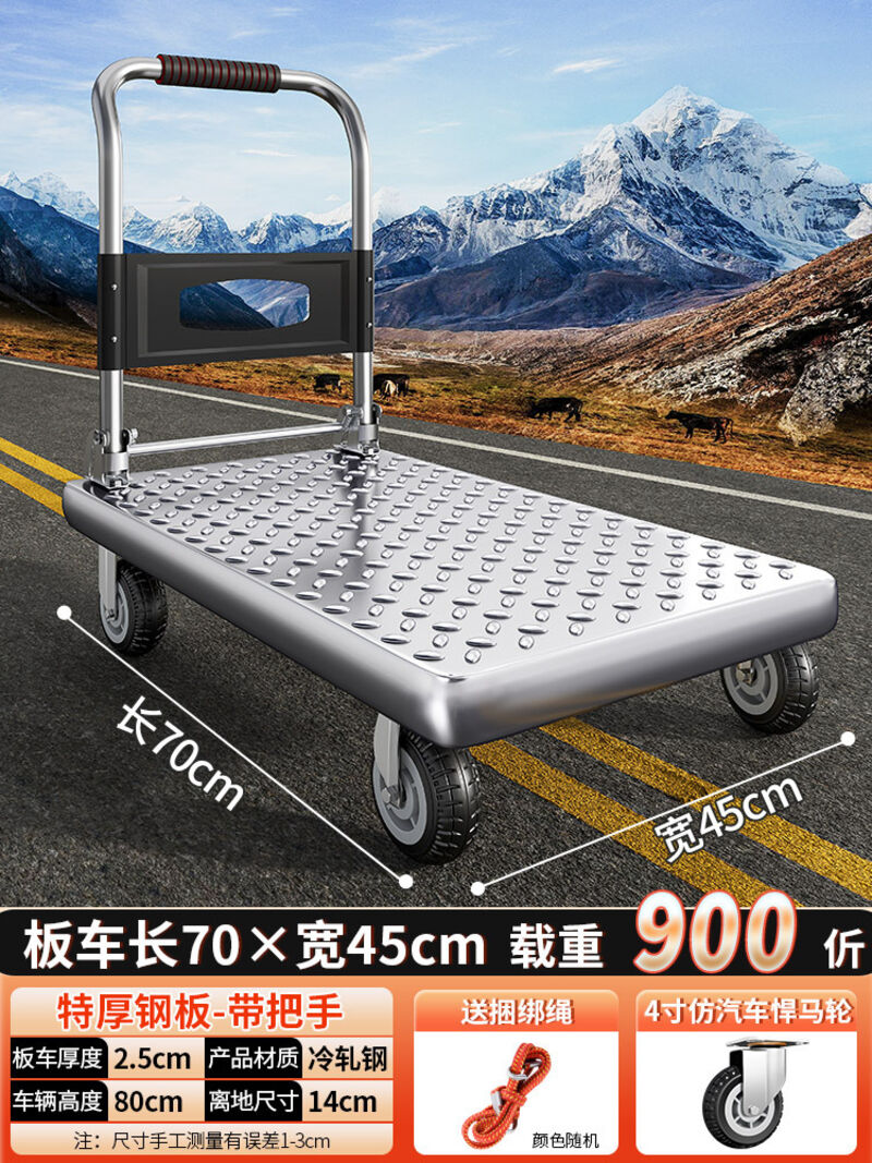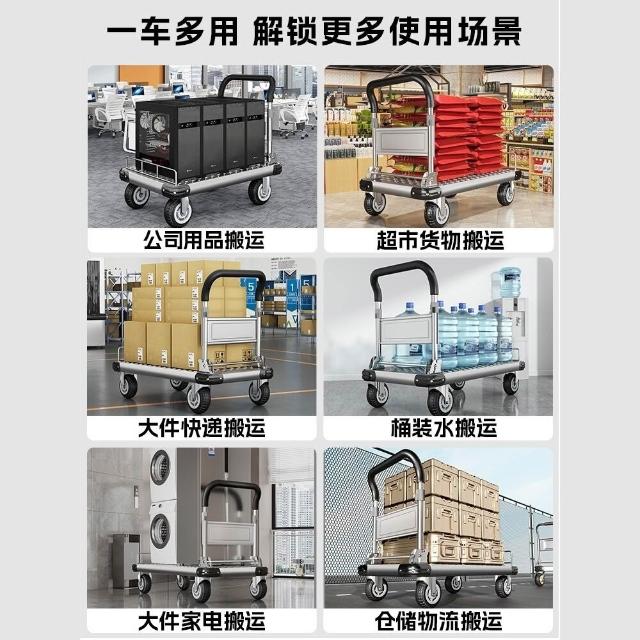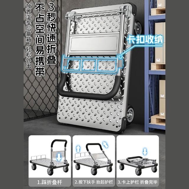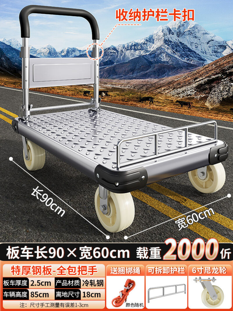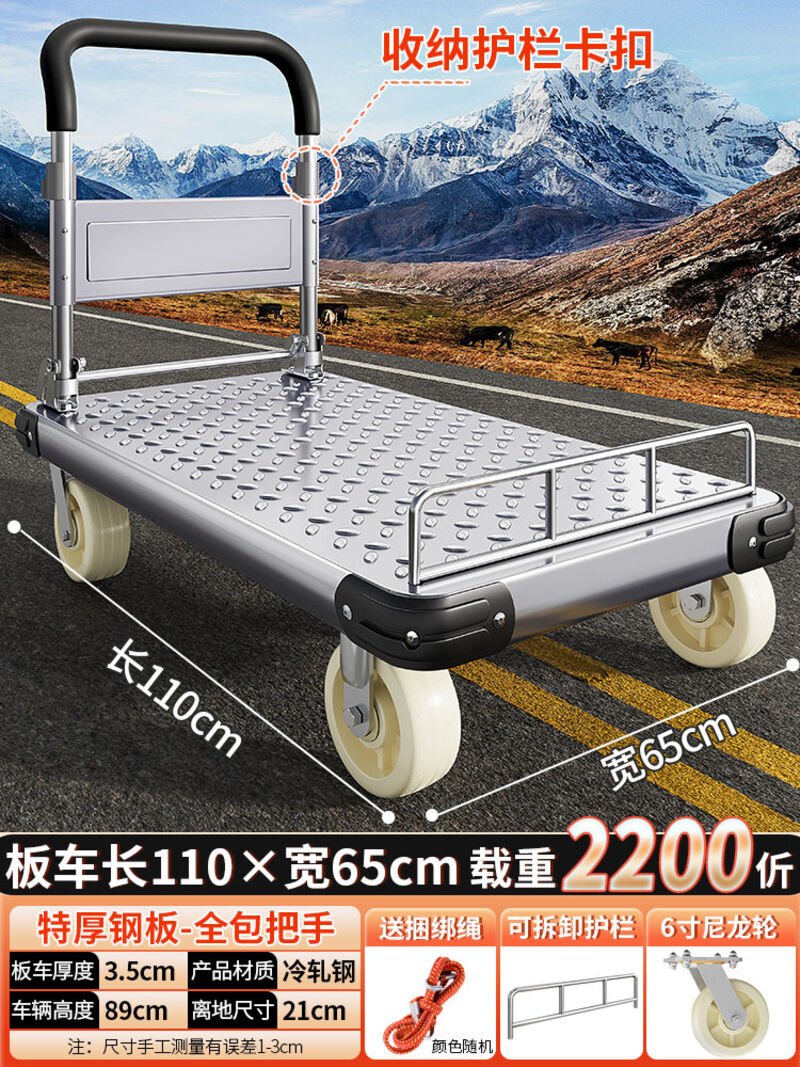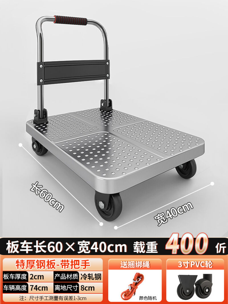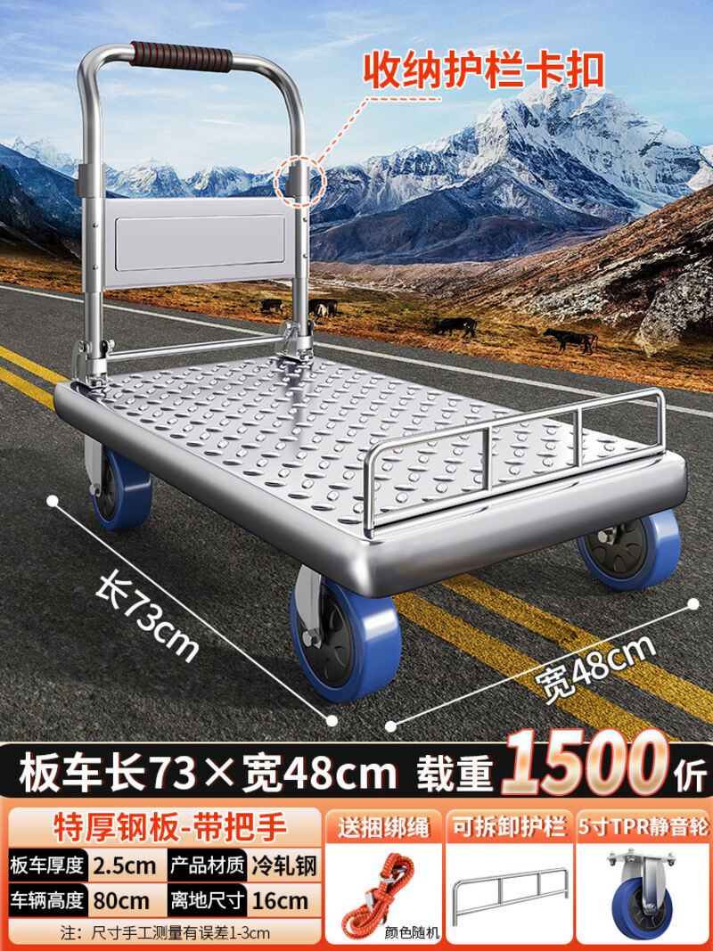 鋼板小推車拉貨手推車搬運車家用平板車便攜拖車折疊小拉車手拉車