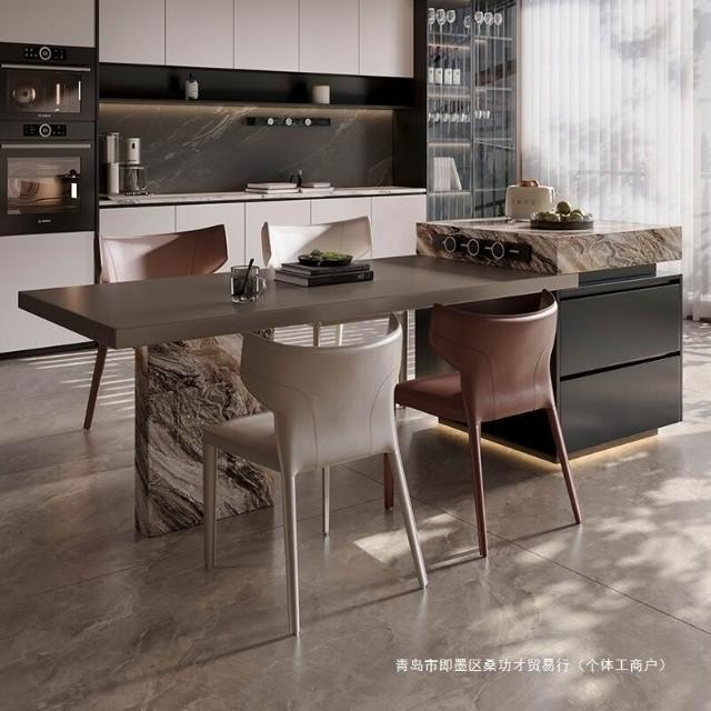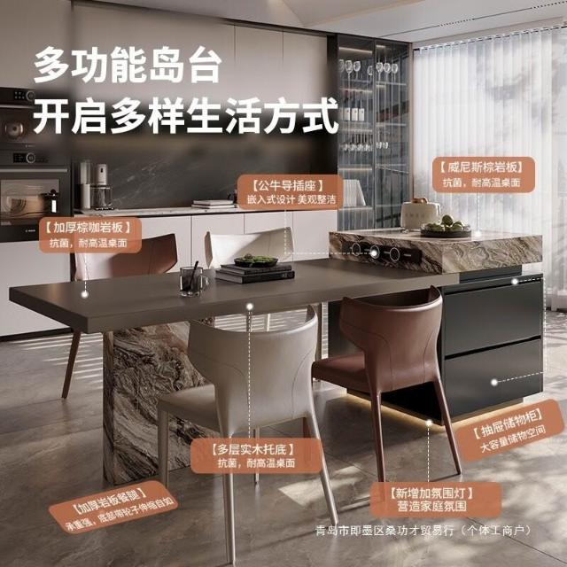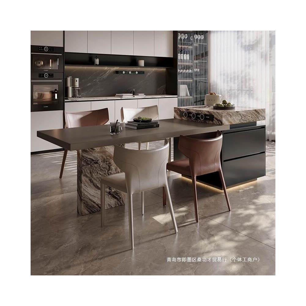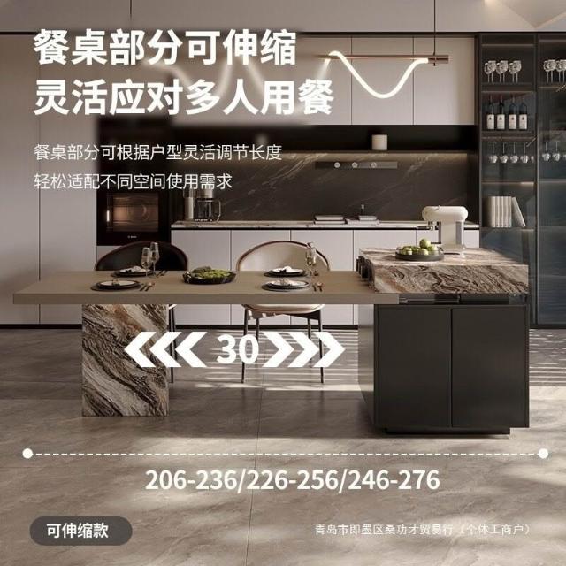全巖板島臺櫃餐桌一體家用可伸縮吧臺桌極簡導臺輕奢威尼斯棕中島