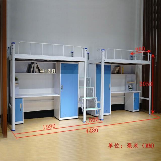 鐵藝上下床高低鋪鐵架床學生上床下桌櫃宿舍床員工步梯連體架子床