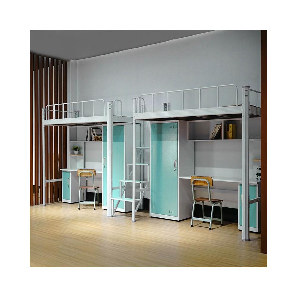 鐵藝上下床高低鋪鐵架床學生上床下桌櫃宿舍床員工步梯連體架子床