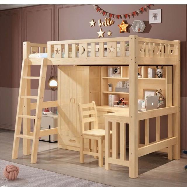 實木上床下桌高低床上一體組合衣櫃多功能書桌學習床高架小戶型