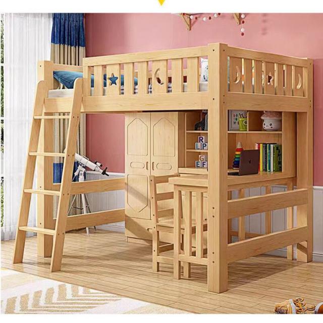實木上床下桌高低床上一體組合衣櫃多功能書桌學習床高架小戶型