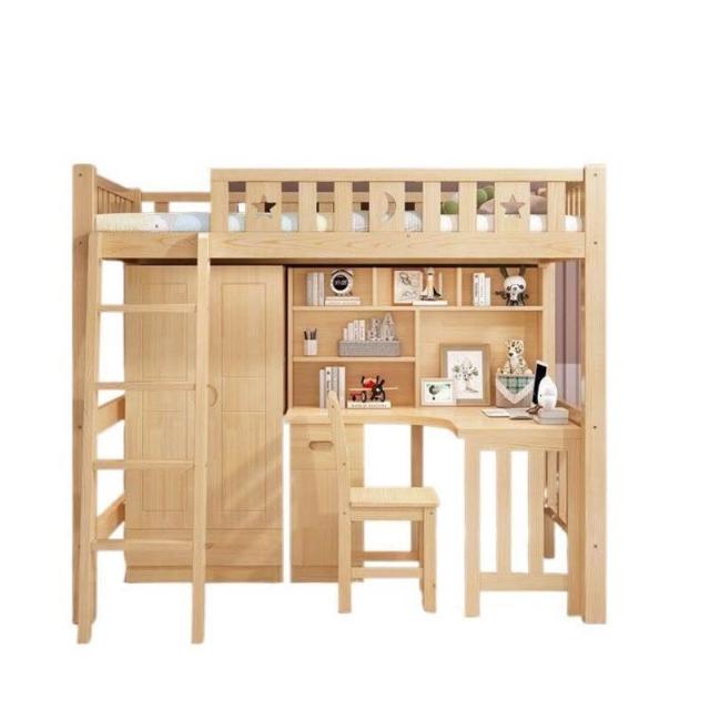 實木上床下桌高低床上一體組合衣櫃多功能書桌學習床高架小戶型