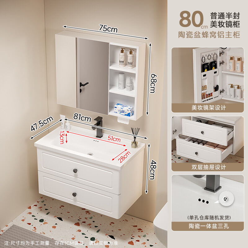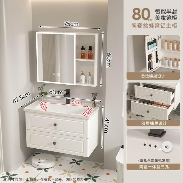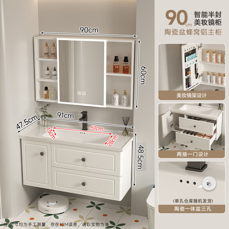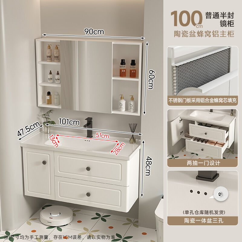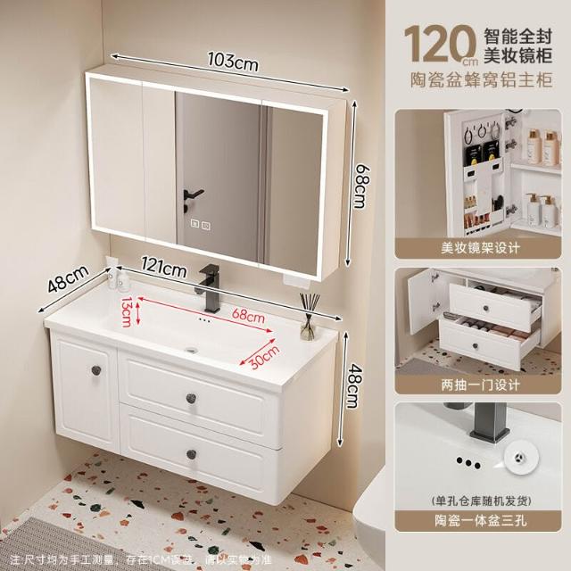 110/120公分法式蜂窩鋁2025新款浴室櫃洗手盆組合陶瓷一體洗漱盆