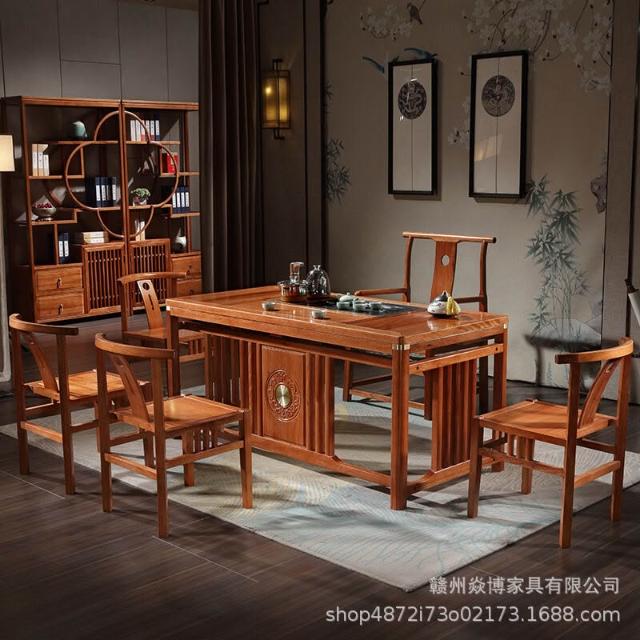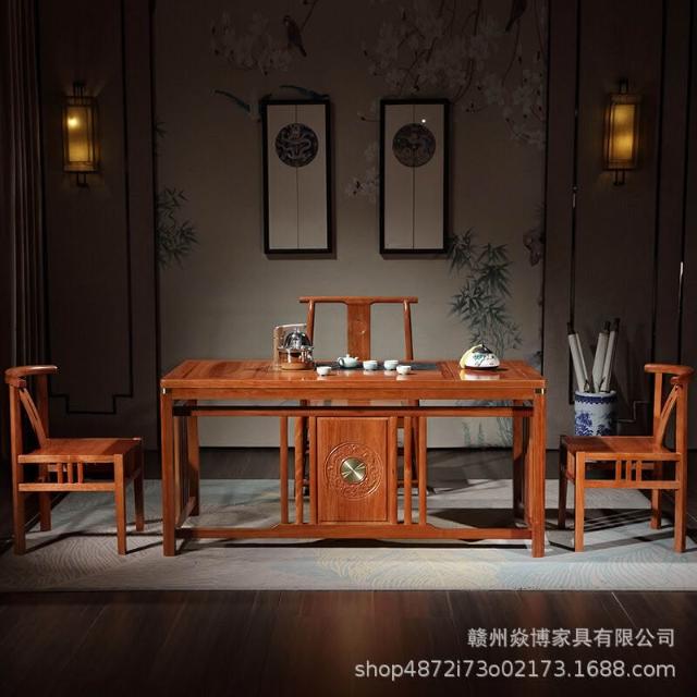 茶臺實木茶桌椅組合一體辦公室家用喝茶桌花梨木簡約新中式茶臺