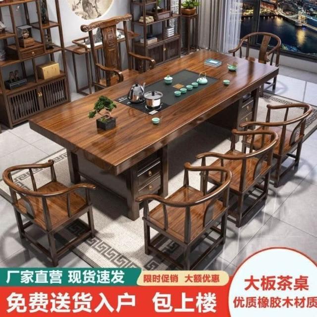 實木大板茶桌桌椅組合中式家用辦公一體一整套茶幾功夫禅意泡茶