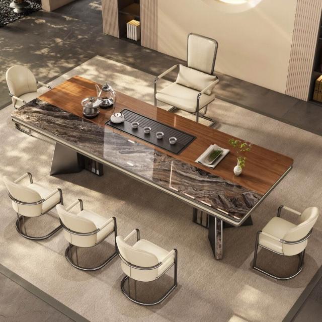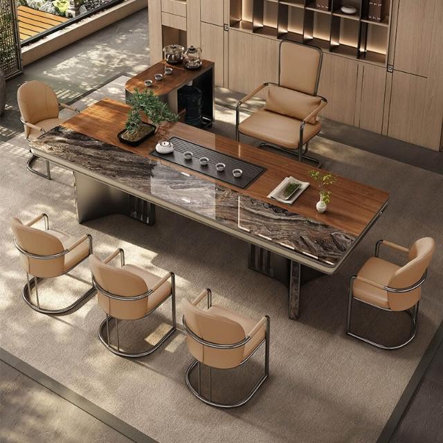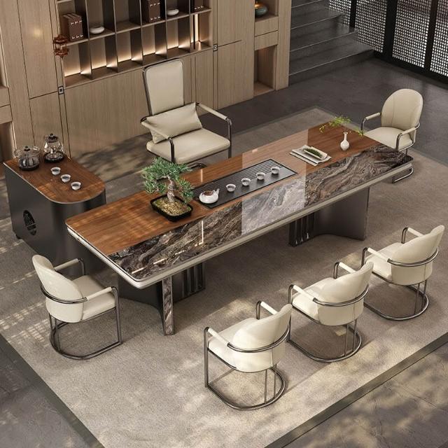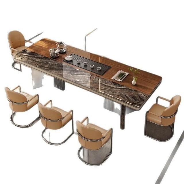 奢石巖板茶臺桌輕奢現代高級感新中式功夫泡茶桌辦公室茶桌椅組合