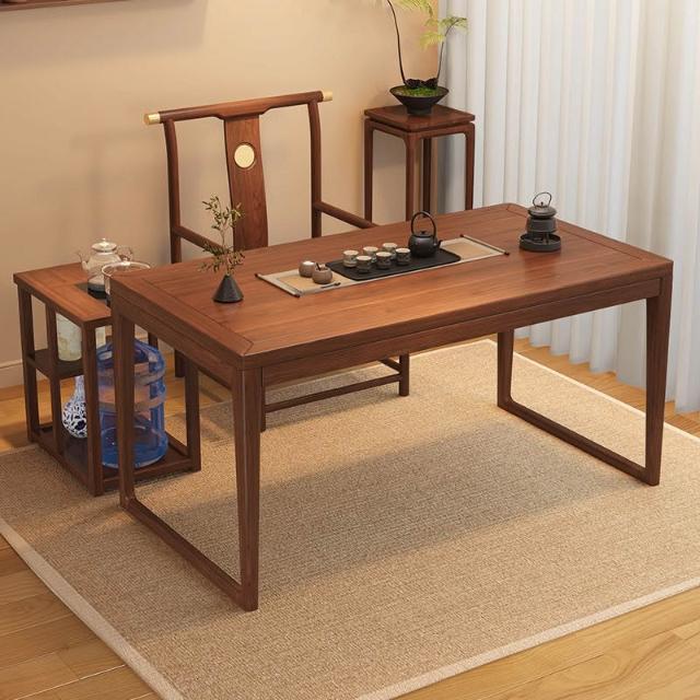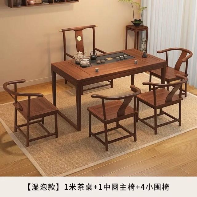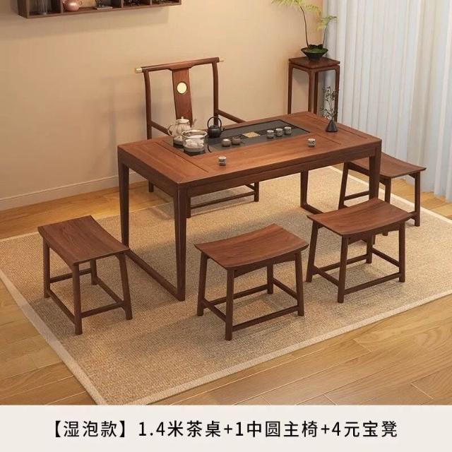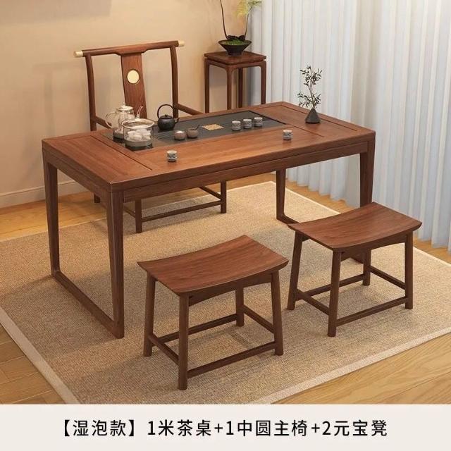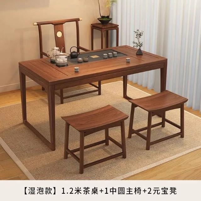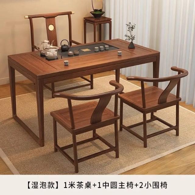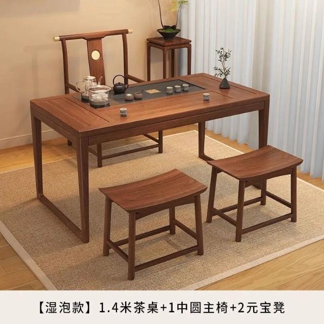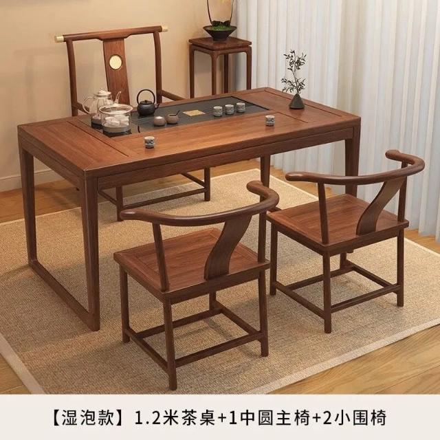 胡桃木陽臺茶桌椅組合新中式小戶型家用簡約泡茶臺實木功夫泡茶桌